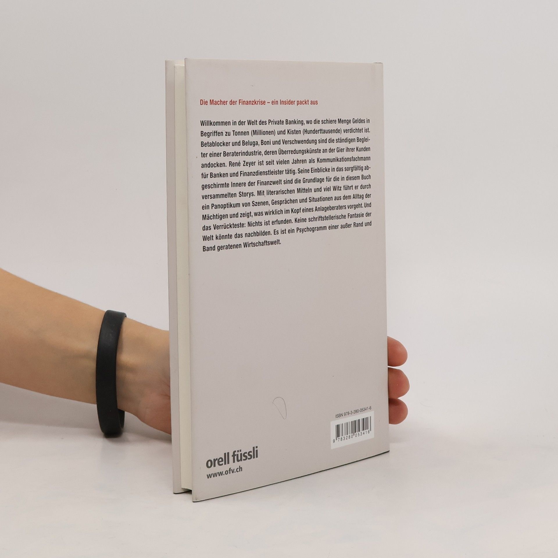 René Zeyer entlarvt mit viel Witz und literarischem Können Eitelkeiten, Intrigen, Ängste, Karrieresucht und Geltungsbedürfnis von Bankern. Und das Verrückteste: Nichts ist erfunden – ein Insiderbericht aus der bislang sorgfältig abgeschirmten Finanzwelt. Mit spitzer Feder und viel Ironie führt René Zeyer durch ein Panoptikum von Szenen, Gesprächen und Situationen aus dem Alltag der Mächtigen. Als Kommunikationsfachmann für Banken und Finanzdienstleister weiss er, was wirklich in den Köpfen von Anlageberatern vorgeht, deren ständige Begleiter Beluga, Boni und Verschwendung sind. Zeyer blickt satirisch hinter die Kulissen und zeichnet schonungslos die Mechanismen von Gier und Gaunerei, die den Kasino-Kapitalismus prägen.