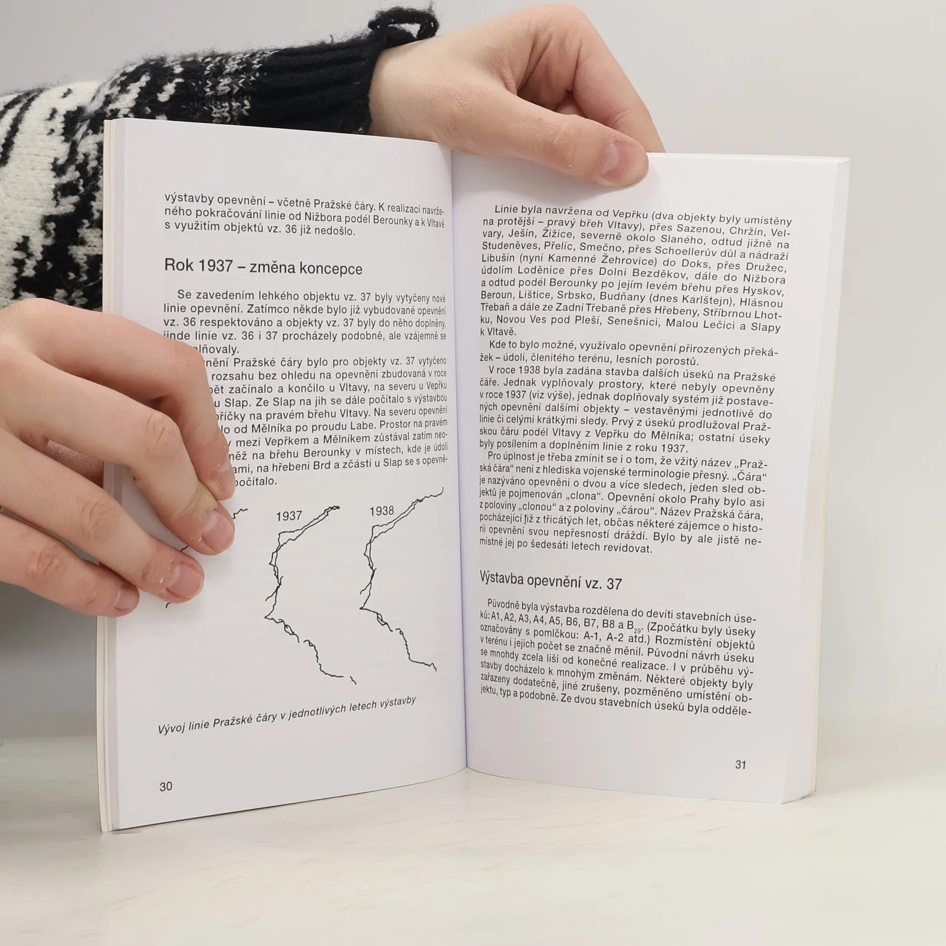 Knížka, věnovaná historii Opevnění předmostí Prahy, známého též jako Pražská čára, je členěna do dvou částí. "Obecná část" zahrnuje kapitoly Výstavba opevnění Republiky československé, Objekty opevnění (Těžké opevnění, Lehké opevnění, Stálé překážky). Speciální část "Opevnění předmostí Prahy" pak Opevnění z roku 1936 - stavební úsek IX, Návrhy pokračování výstavby, Rok 1937 - změna koncepce, Výstavba opevnění vz. 37, Popis terénu a opevnění jednotlivých úseků, Budování překážek, Opevnění a lidé 1936 – 1938, Střežení objektů; vojenské cvičení, Mobilizace, Evakuace, likvidace 1938, Neuskutečněné plány další výstavby, Období Protektorátu Čechy a Morava, V osvobozeném státě, Současnost, Pražská čára ve fotografii, Co říci závěrem?, Metodika hledání zbytků opevnění v terénu, dále seznam objektů opevnění včetně zaznamenání jejich současného stavu a souhrn v němčině. Ilustrace jsou výhradně kreslené.