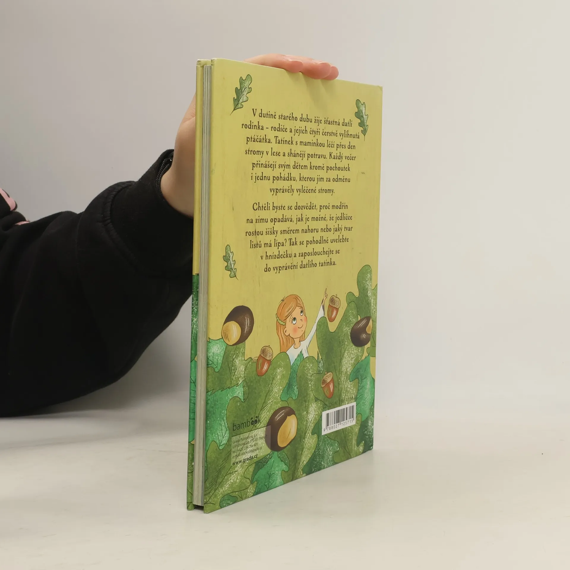 V dutině starého dubu žije šťastná datlí rodinka – rodiče a jejich čtyři čerstvě vylíhnutá ptáčátka. Tatínek s maminkou léčí přes den stromy v lese a shánějí potravu. Každý večer přinášejí svým dětem kromě pochoutek i jednu pohádku, kterou jim za odměnu vyprávěly vyléčené stromy. Chtěli byste se dozvědět, proč modřín na zimu opadává, jak je možné, že jedličce rostou šišky směrem nahoru nebo jaký tvar listů má lípa? Tak se pohodlně uvelebte v hnízdečku a zaposlouchejte se do vyprávění datlího tatínka.