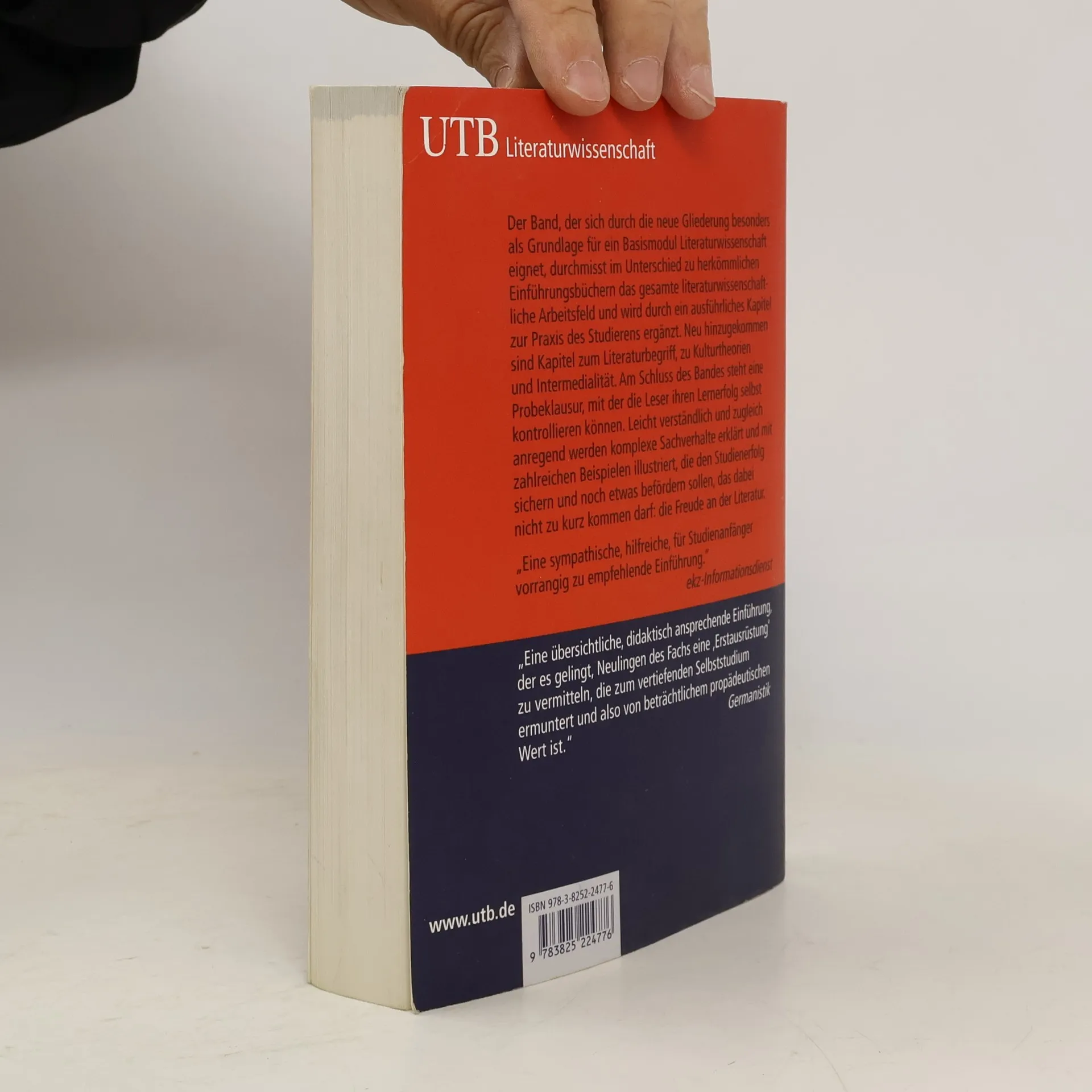 Der Band, der sich durch die neue Gliederung besonders als Grundlage für ein Basismodul Literaturwissenschaft eignet, durchmisst im Unterschied zu herkömmlichen Einführungsbüchern das gesamte literaturwissenschaftliche Arbeitsfeld und wird durch ein ausführliches Kapitel zur Praxis des Studierens ergänzt. Neu hinzugekommen sind Kapitel zum Literaturbegriff, zu Kulturtheorien und Intermedialität. Am Schluss des Bandes steht eine Probeklausur, mit der die Leser ihren Lernerfolg selbst kontrollieren können. Leicht verständlich und zugleich anregend werden komplexe Sachverhalte erklärt und mit zahlreichen Beispielen illustriert, die den Studienerfolg sichern und noch etwas befördern sollen, das dabei nicht zu kurz kommen darf: die Freude an der Literatur. „Eine sympathische, hilfreiche, für Studienanfänger vorrangig zu empfehlende Einführung.“ ekz-Informationsdienst „Eine übersichtliche, didaktisch ansprechende Einführung, der es gelingt, Neulingen des Fachs eine ‚Erstausrüstung‘ zu vermitteln, die zum vertiefenden Selbststudium ermuntert und also von beträchtlichem propädeutischen Wert ist.“ Germanistik