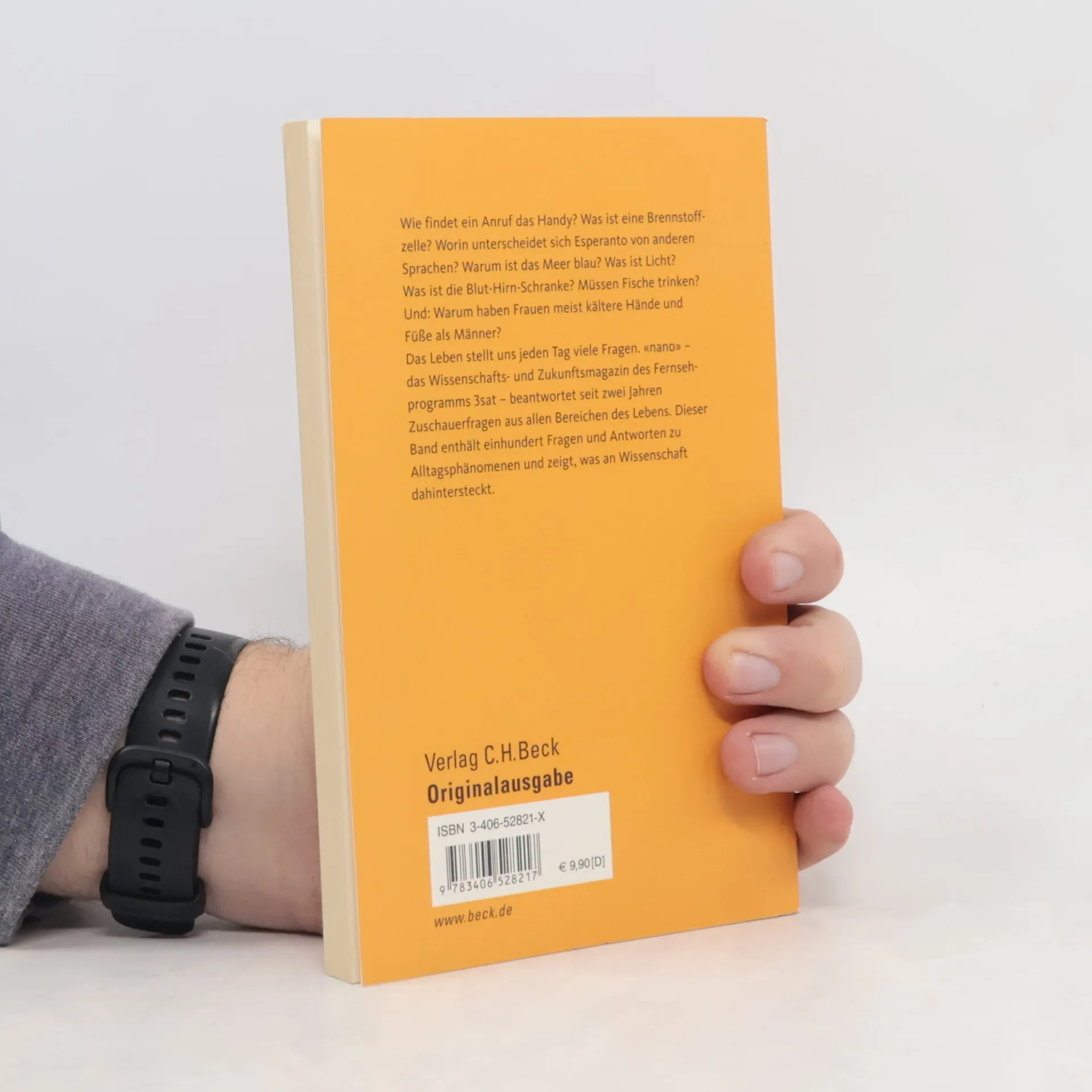 Warum ist das Meer blau? Wie findet ein Anruf das Handy? Was ist die Blut-Hirn-Schranke? Müssen Fische trinken? Und warum darf eigentlich kein Metall in die Mikrowelle? Das Leben stellt uns jeden Tag vor viele Fragen. „nano“, das Wissenschafts- und Forschungsmagazin des Fernsehsenders 3sat, geht diesen Dingen fünfmal wöchentlich auf den Grund. In der Rubrik „aha“ werden seit rund zwei Jahren jeden Dienstag Zuschauerfragen beantwortet; so ist inzwischen beträchtliches Wissen zusammengetragen worden. Zuschauer gaben auch die Anregung, die besten Fragen und Antworten in einem Buch zu sammeln - hier ist es. Einhundert Fragen und Antworten zu Alltagsphänomenen, die man meistens so hinnimmt, ohne sich klarzumachen, was an Wissenschaft dahintersteckt.