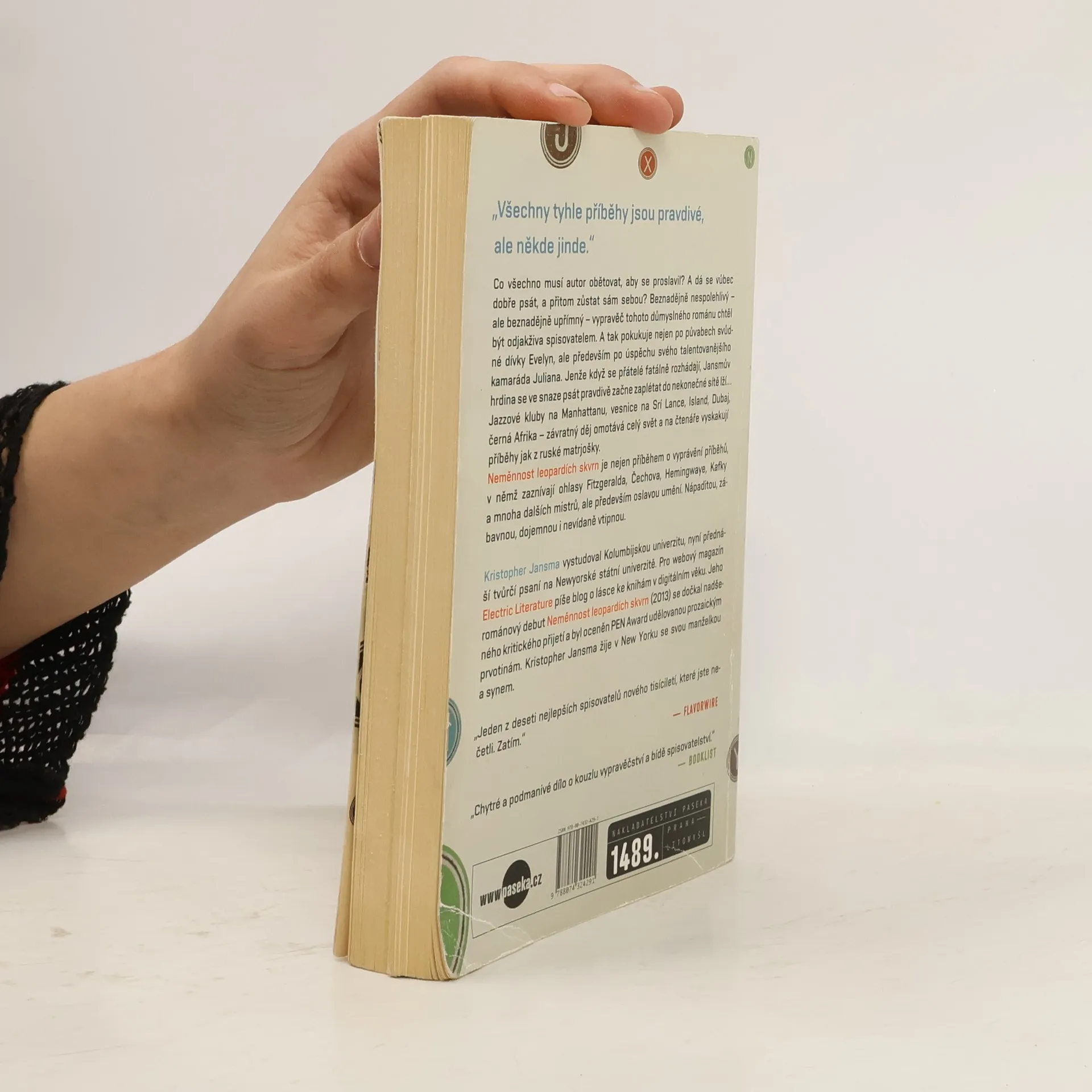 „Tyto příběhy jsou všechny pravdivé, ale někde jinde.“ Zní to jako banální zápletka: mladý muž, který se chce stát spisovatelem, pokukuje nejen po úspěchu svého literárně zdatnějšího kamaráda Juliana, ale i po jeho okouzlující přítelkyni Evelyn. Jenže když se trojice fatálně rozhádá, Jansmův hlavní hrdina se ve snaze psát pravdivě a také pochopit sebe sama začne zaplétat do nekonečné sítě lží. Jazzové kluby na Manhattanu, vesnice na Srí Lance, Island, Dubaj, černá Afrika – závratný děj omotává celý svět a na čtenáře, který se úžasem nemá ani kdy nadechnout, vyskakují příběhy jak z ruské matrjošky. Neměnnost leopardích skvrn je nejen příběhem o vyprávění příběhů, v němž zaznívají ohlasy Fitzgeralda, Tolstého, Hemingwaye, Boba Dylana a mnoha dalších mistrů, ale především oslavou opravdového umění. Nápaditou, zábavnou, srdceryvnou i nevídaně vtipnou.