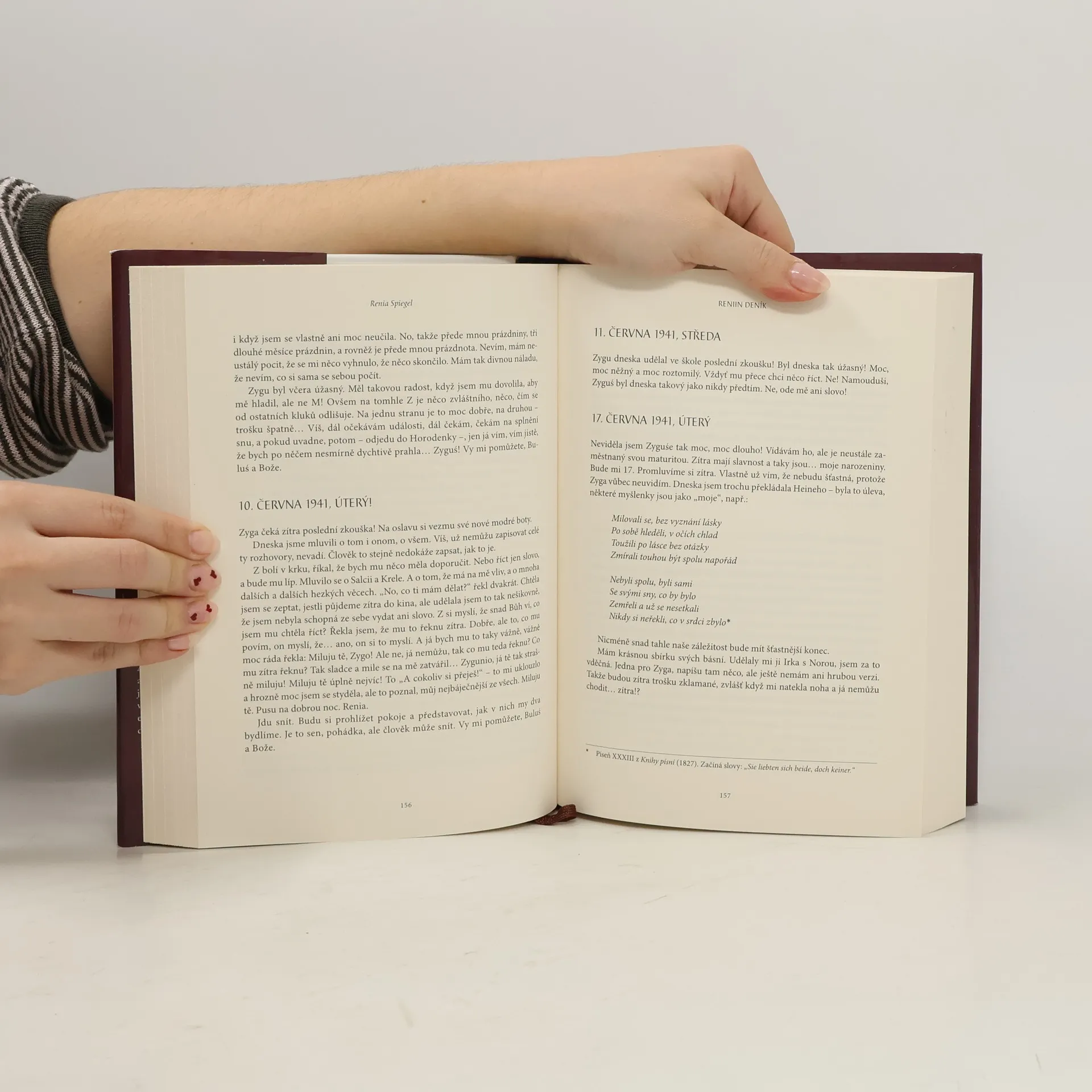 15. července 1942, středa Pamatuj si tenhle den; pamatuj si ho dobře. Od dnešních 8 hodin jsme uzavřeni v ghettu. Tady teď žiju. Svět je ode mě oddělen a já jsem oddělena od světa. Renia, mladá dívka z Polska, sní o tom, že se stane básnířkou. Když v roce 1939 napadne její zemi Sovětský svaz a Německo, její svět se roztříští. Oddělená od matky prchá z Přemyšli před bombardováním, přihlíží mizení židovských rodin a stává se svědkem vzniku ghetta. Navzdory hrůzám války nachází Renia krásu ve svém psaní a poprvé se zamilovává. Se Zygmuntem si vymění první polibek těsně před tím, než jejich město dobydou nacisté. Zygmunt napíše poslední, srdcervoucí zápis do Reniina deníku. Reniin deník, objevený po sedmdesáti letech, je považován za klasiku literatury o holocaustu. Renia Spiegel je označována za „polskou Annu Frankovou“. Její psaní je mimořádným svědectvím o hrůzách války, ale také o životě, který může existovat i v nejtemnějších dobách. Renia se narodila ve východním Polsku v roce 1924 a začala si psát deník v lednu 1939. Válka ji oddělila od matky a přivedla ji do Přemyšle, kde zažila brutalitu Sovětů a později nacistů. V létě 1942 se musela ukrývat, aby se vyhnula deportacím do vyhlazovacích táborů. Nacisti její úkryt objevili a zastřelili ji, když jí bylo čerstvě osmnáct let.
