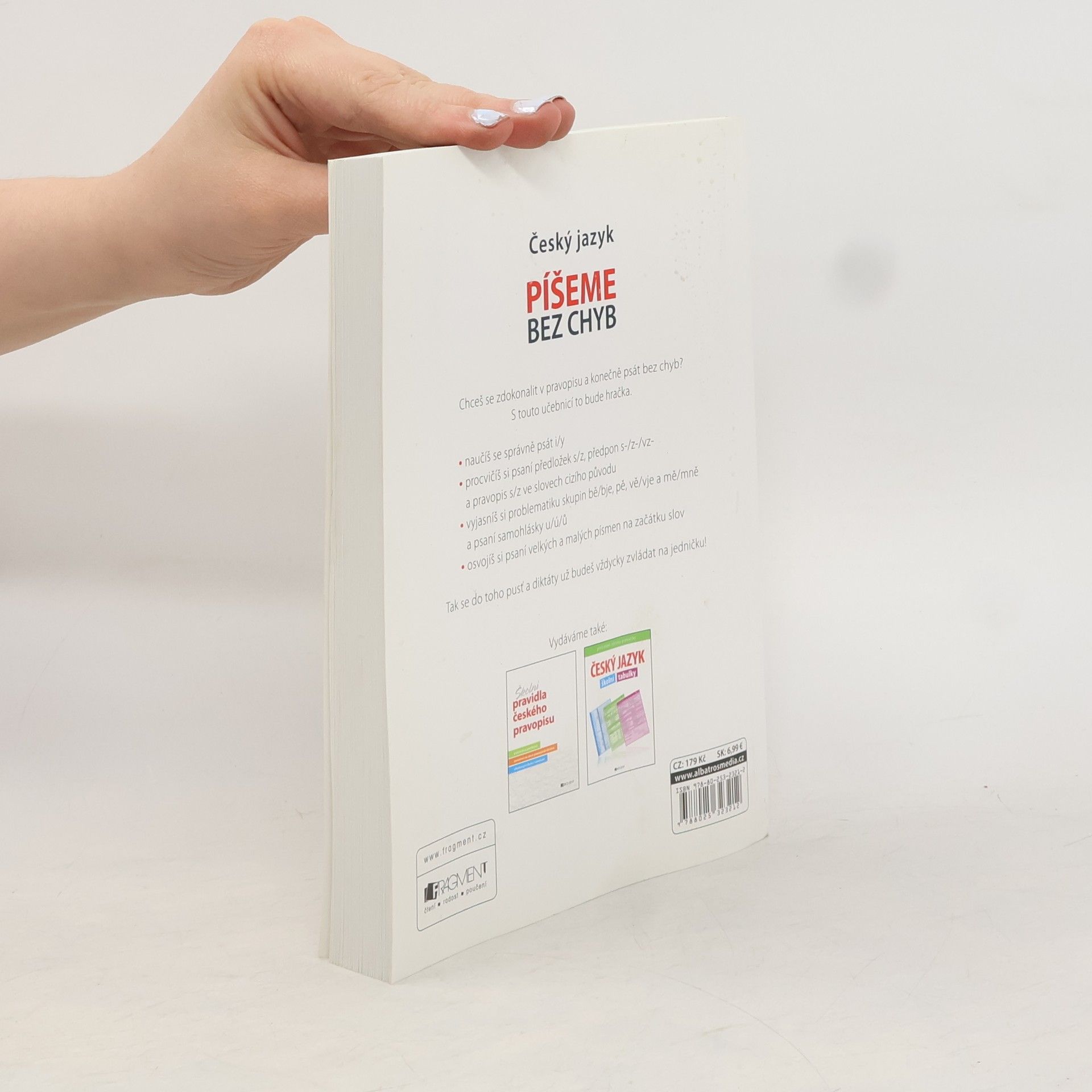 Chceš se zdokonalit v pravopisu a konečně psát bez chyb? S touto učebnicí to bude hračka. - naučíš se správně psát i/y - procvičíš si psaní předložek s/z, předpon s-/z-/vz- a pravopis s/z ve slovech cizího původu - vyjasníš si problematiku skupin bě/bje, pě, vě/vje a mě/mně a psaní samohlásky u/ú/ů - osvojíš si psaní velkých a malých písmen na začátku slov. Tak se do toho pusť a diktáty už budeš vždycky zvládat na jedničku!