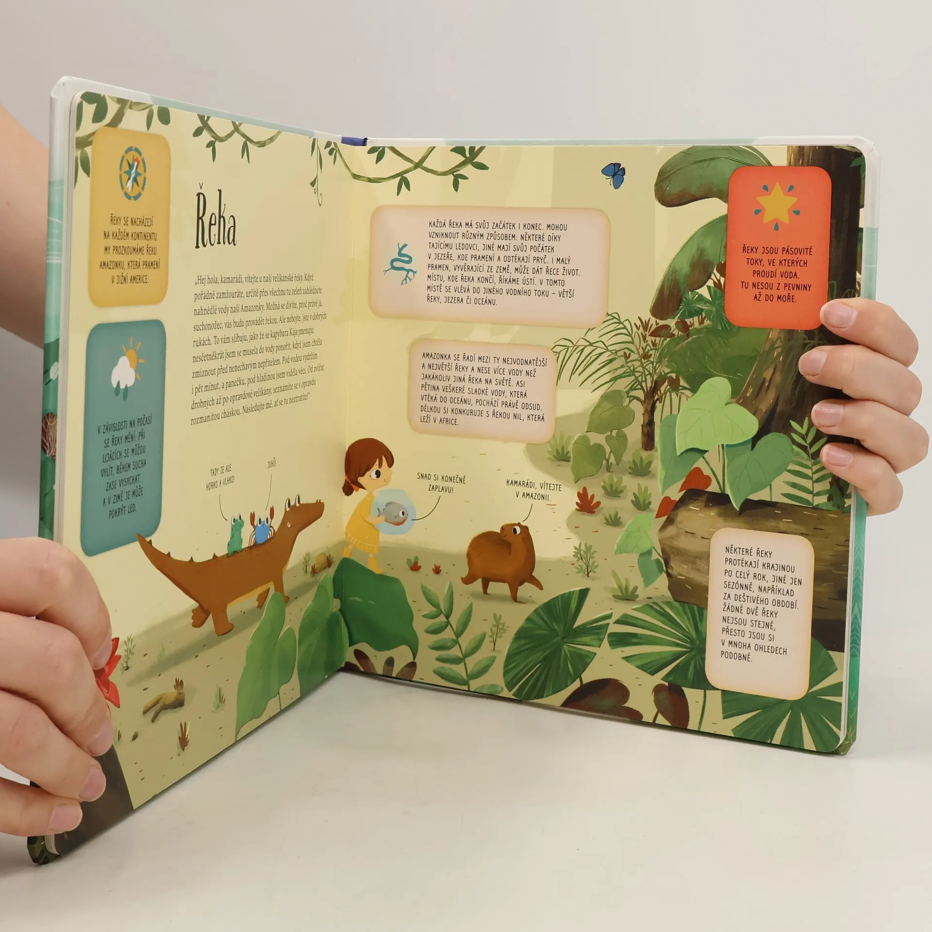 Seznamte se s různými typy vodních toků a také s rostlinami a zvířaty, které je obývají, pomocí naší party zvířat. Jsou na cestě za svým životním dobrodružstvím: chtějí se vrátit domů, odkud pocházejí. Ale co když neví, kde jejich domov je? Naštěstí je tu Anička. Ta jim pomůže objet různé vody světa, od polárních vod až po řeku Amazonku, prozkoumat je a zjistit, jestli to není domov některého z nich. Co se stane, až dojdou na konec své cesty? O tom vás zvířátka jistě ráda zpraví.