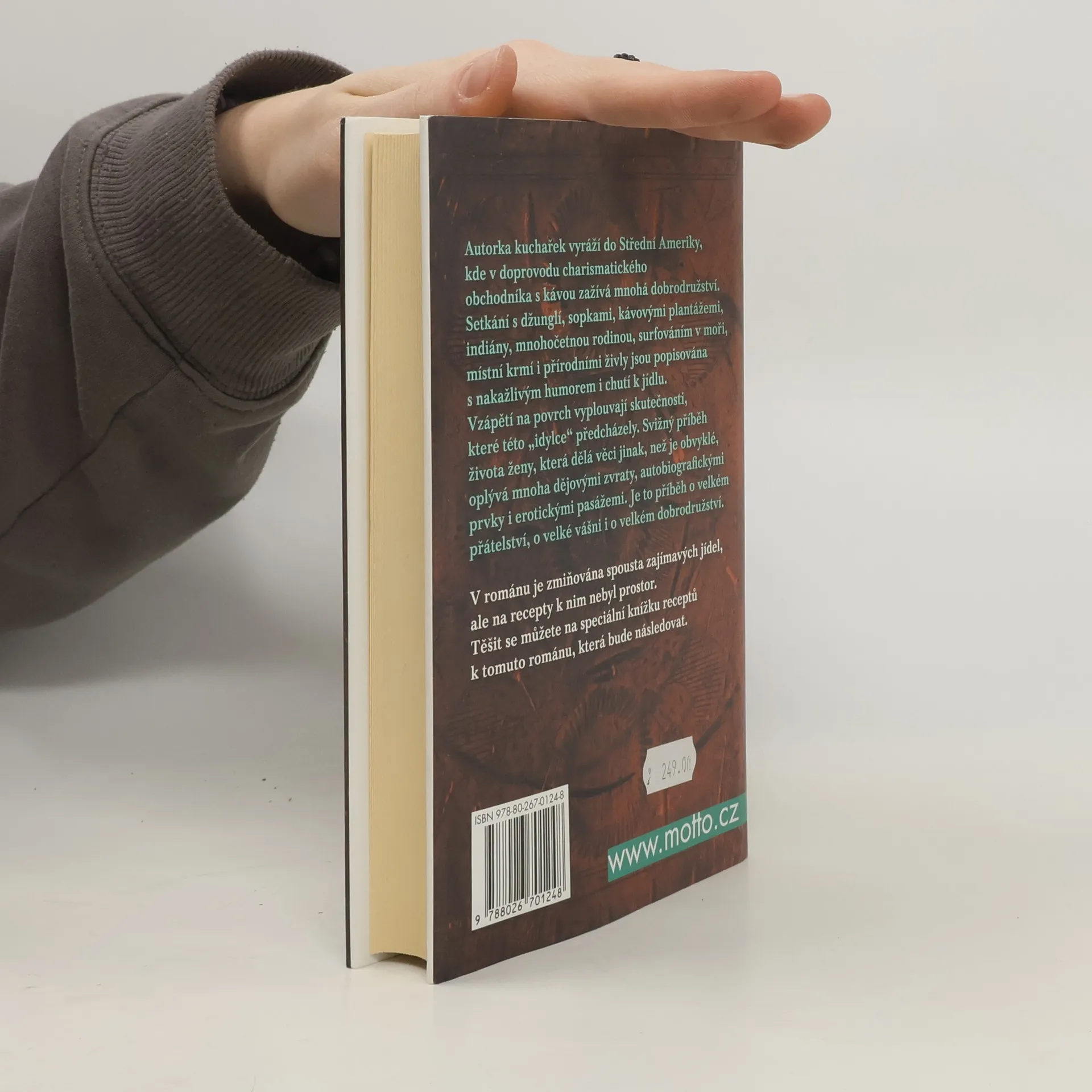 Autorka kuchařek vyráží do Střední Ameriky, kde v doprovodu neobyčejně charismatického obchodníka s kávou zažívá mnohá dobrodružství. Tento svižný příběh o ženě, která dělá věci jinak, než je obvyklé, oplývá mnoha dějovými zvraty a je popisován s nakažlivým humorem i chutí k jídlu.