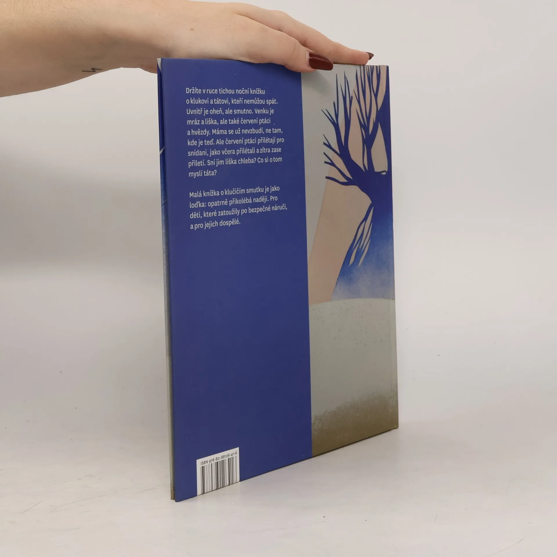 „Klučičí“ knížka o truchlení, jemná něžná, poetická. Chlapeček, který nemůže v noci spát, nachází bezpečí v tátově náruči. Tehdy se odváží a ptá se na věci, které ho trápí. Spí ptáci v noci? A lišky? A co maminka, která umřela: kdy už se probudí a vrátí se domů? Táta a chlapec na noční procházce, otázky plné úzkosti, laskavé a jasné odpovědi jeho táty, jistota a klid pod hvězdami. To je nová kniha, která obohacuje naši produkci o jiný rozměr, jak obsahový, tak výtvarný.
