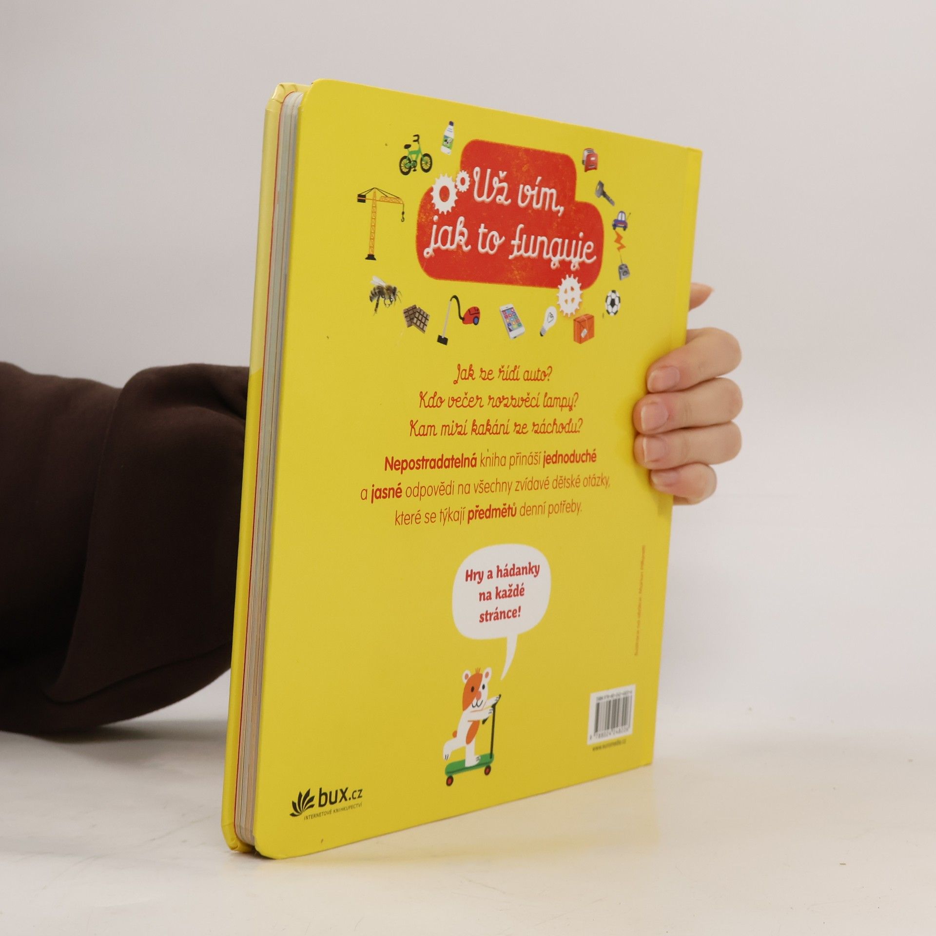 Tato malá encyklopedie odpovídá na 50 někdy překvapivých dětských otázek o tom, jak se vyrábějí a fungují věci, které používáme v každodenním životě. Jednoduché texty, četné ilustrace a přehledná grafická úprava pomáhají sdělovat informace zábavnou formou. Ačkoli je kniha určena především pro děti ve věku 4–7 let, mnoho překvapivého a poučného v ní objeví i starší čtenáři. Hravá a poutavá knížka pro malé i velké.