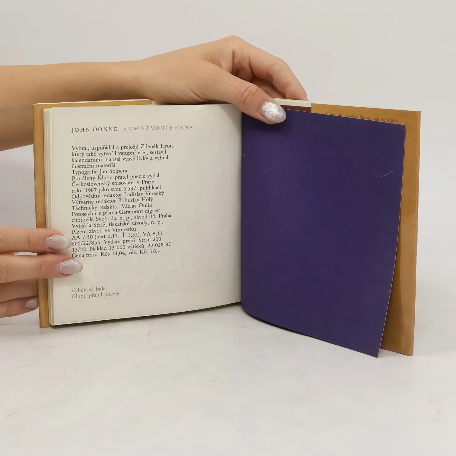 Výbor z díla alžbětinského básníka Johna Donna v překladu Zdeňka Hrona.