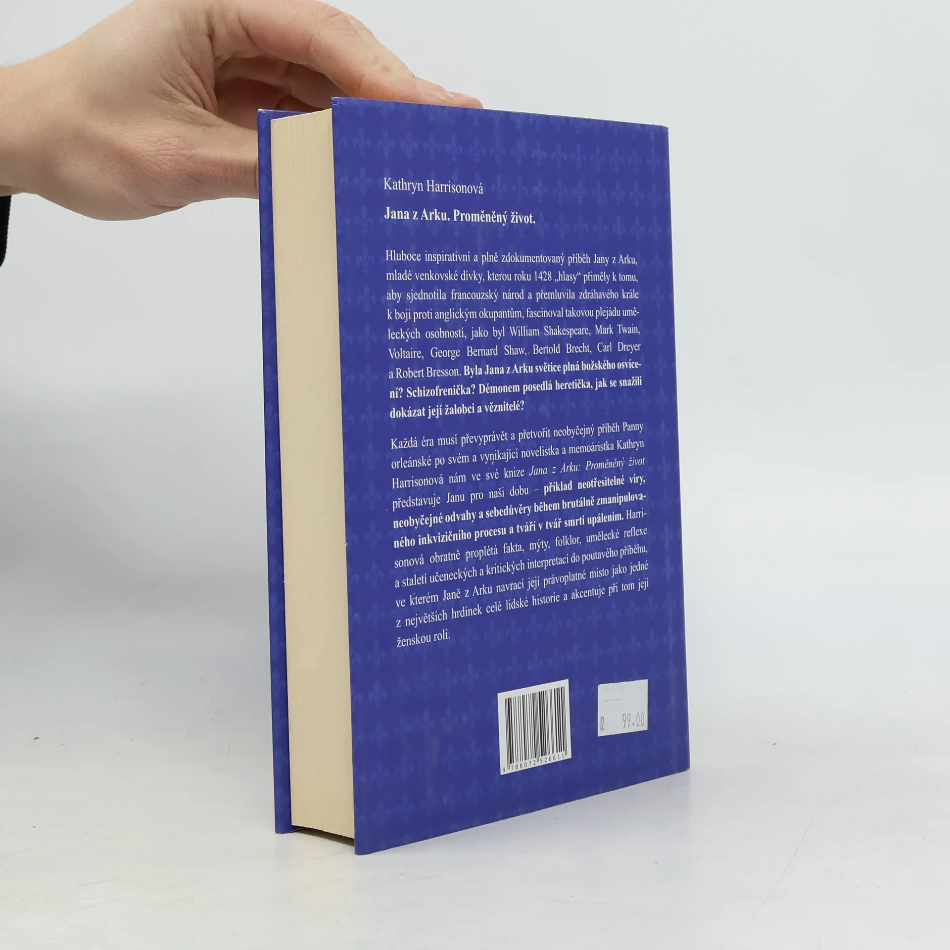 Nesmrtelný příběh o síle lidské odvahy. Hluboce inspirativní a plně zdokumentovaný příběh Jany z Arku, kterou roku 1428 „hlasy“ přiměly k tomu, aby sjednotila francouzský národ a přemluvila zdráhavého krále k boji proti anglickým okupantům, fascinoval takovou plejádu uměleckých osobností, jako byl William Shakespeare, Mark Twain, Voltaire, Bertold Brecht nebo Robert Bresson. Byla Jana z Arku světice plná božského osvícení? Schizofrenička? Démonem posedlá heretička, jak se snažili dokázat její žalobci a věznitelé? Každá éra musí převyprávět a přetvořit neobyčejný příběh Panny orleánské po svém a vynikající novelistka a memoáristka Kathryn Harrisonová nám ve své knize Jana z Arku: Proměněný život představuje Janu pro naši dobu – příklad neotřesitelné víry, neobyčejné odvahy a sebedůvěry během brutálně zmanipulovaného inkvizičního procesu a tváří v tvář smrti upálením. Harrisonová obratně proplétá fakta, mýty, folklor, umělecké reflexe a staletí učeneckých a kritických interpretací do poutavého příběhu, ve kterém Janě z Arku navrací její právoplatné místo jedné z největších hrdinek celé lidské historie a akcentuje při tom její ženskou roli.
