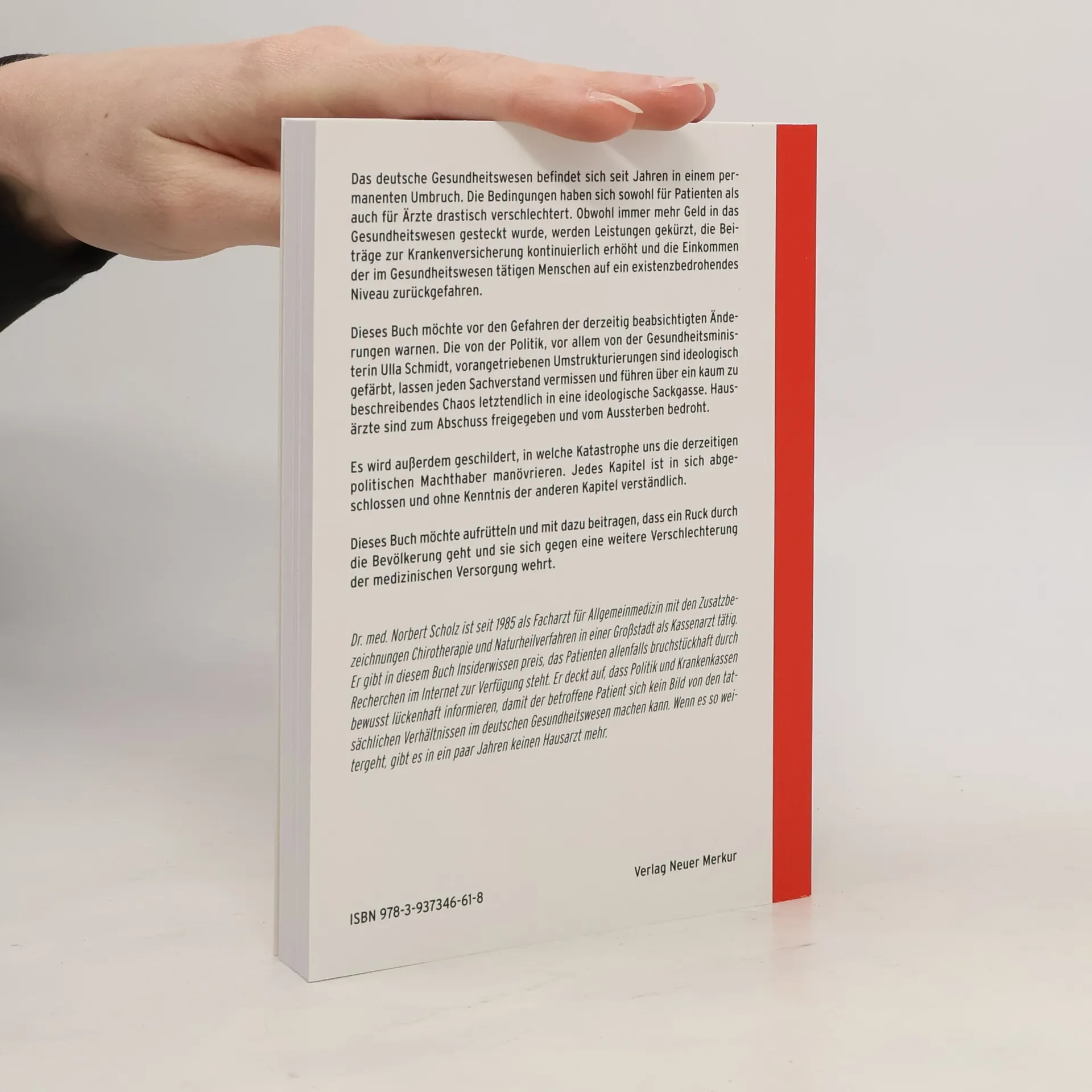 Das deutsche Gesundheitswesen befindet sich seit Jahren in einem permanenten Umbruch. Die Bedingungen haben sich sowohl für Patienten als auch für Ärzte drastisch verschlechtert. Obwohl immer mehr Geld in das Gesundheitswesen gesteckt wurde, werden Leistungen gekürzt, die Beiträge zur Krankenversicherung kontinuierlich erhöht und die Einkommen der im Gesundheitswesen tätigen Menschen auf ein existenzbedrohendes Niveau zurückgefahren. Dieses Buch möchte vor den Gefahren der derzeitig beabsichtigten Änderungen warnen. Die von der Politik, vor allem von der Gesundheitsministerin Ulla Schmidt, vorangetriebenen Umstrukturierungen sind ideologisch gefärbt, lassen jeden Sachverstand vermissen und führen über ein kaum zu beschreibendes Chaos letztendlich in eine ideologische Sackgasse. Hausärzte sind zum Abschuss freigegeben und vom Aussterben bedroht. Es wird außerdem geschildert, in welche Katastrophe uns die derzeitigen politischen Machthaber manövrieren. Jedes Kapitel ist in sich abgeschlossen und ohne Kenntnis der anderen Kapitel verständlich. Dieses Buch möchte aufrütteln und mit dazu beitragen, dass ein Ruck durch die Bevölkerung geht und sie sich gegen eine weitere Verschlechterung der medizinischen Versorgung wehrt.