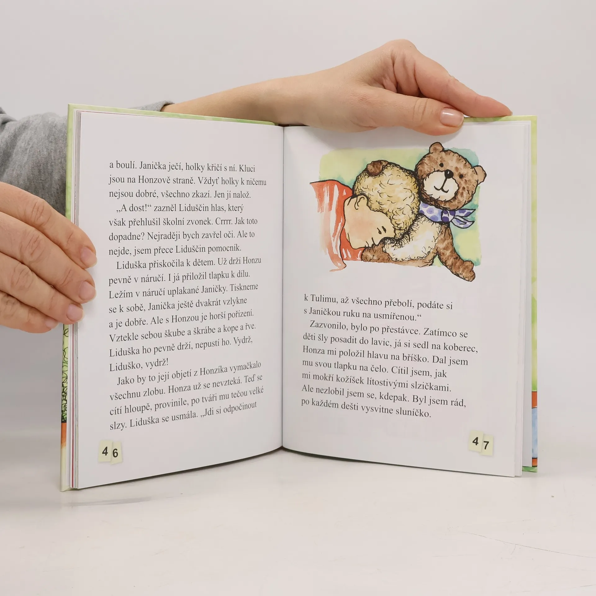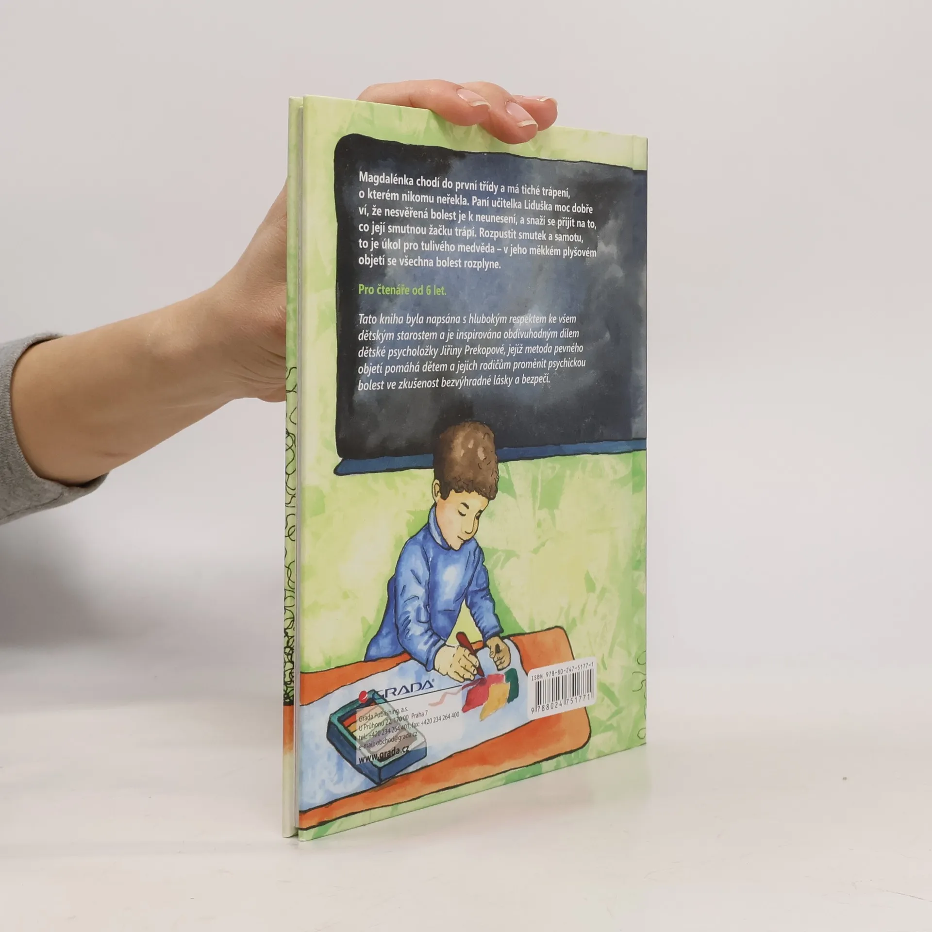 Magdalénka má tiché trápení, o kterém nikomu neřekla. Paní učitelka Liduška moc dobře ví, že nesvěřená bolest je k neunesení, a snaží se přijít na to, co její smutnou žačku trápí. Rozpustit smutek a samotu, to je úkol pro tulivého medvěda - v jeho měkkém plyšovém objetí se všechna bolest rozplyne. Křehký příběh o dětském smutku, naději i radosti doprovázejí nevšední ilustrace Zdeňky Řezbové Morávkové. Tato kniha byla napsána s hlubokým respektem ke všem dětským starostem a je inspirována obdivuhodným dílem dětské psycholožky Jiřiny Prekopové, jejíž metoda pevného objetí pomáhá dětem a jejich rodičům proměnit psychickou bolest ve zkušenost bezvýhradné lásky a bezpečí.