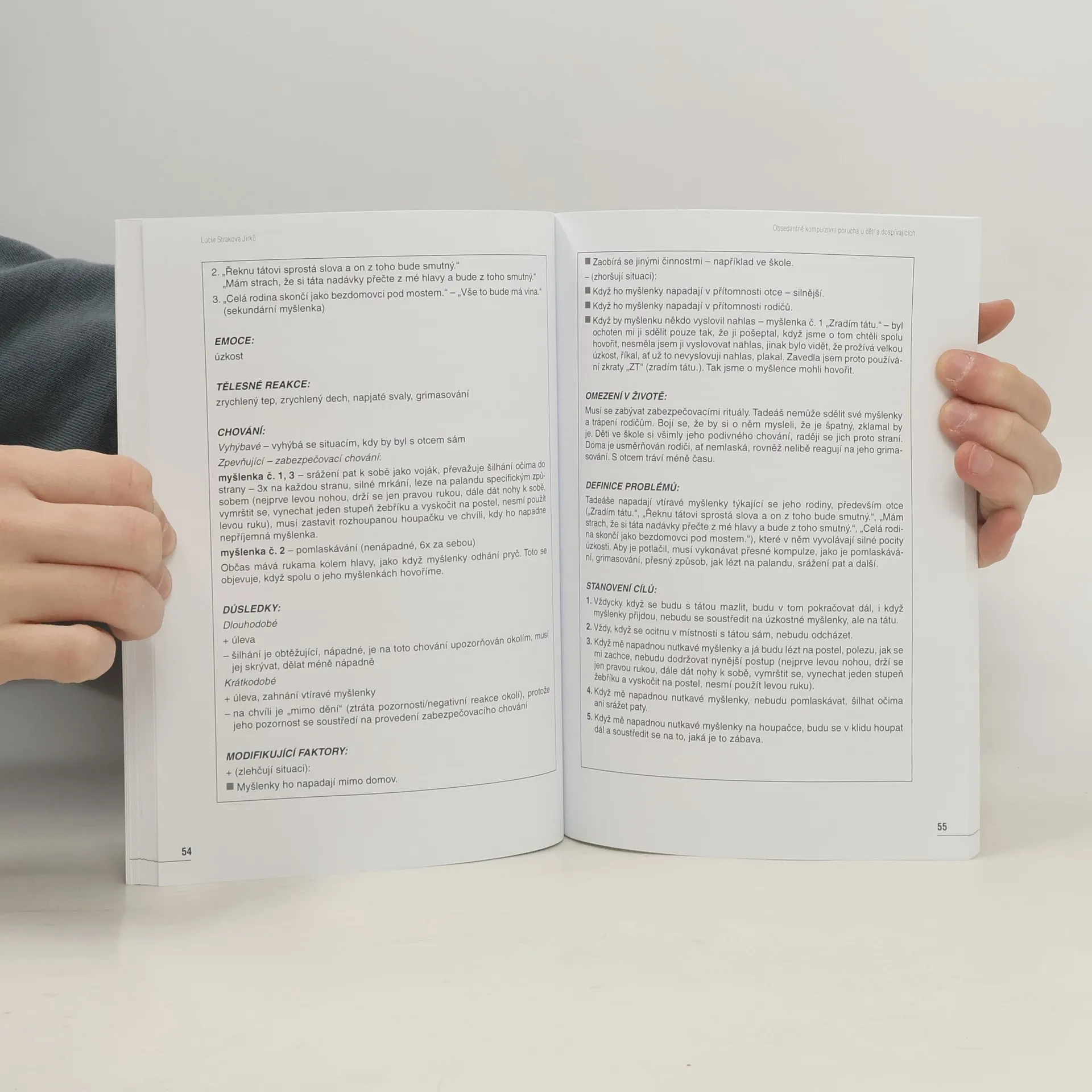 Podtitul: Příručka pro terapeuty, psychology i rodiče. Pohledem kognitivně behaviorální terapie. Publikace se snaží rozšířit povědomí o závažnosti obsedantně kompulzivní poruchy (OCD) a přestavuje možnosti terapie a její specifika, jedná-li se o dětského či dospívajícího klienta. Psychické potíže dítěte nebo dospívajícího mohou být důsledkem nestability a problémů v rodině. Neřešené problémy se někdy stávají spouštěčem OCD. Tato duševní porucha je nejen pro nemocného, ale i pro jeho rodinu velmi zatěžující. Ve své rozvinuté formě má OCD za následek nejen omezení volného času, zpřetrhání společenských vazeb, ale i snížení školního výkonu či ztrátu zaměstnání. Může se objevit depresivní ladění a téměř vždy snížené sebevědomí.