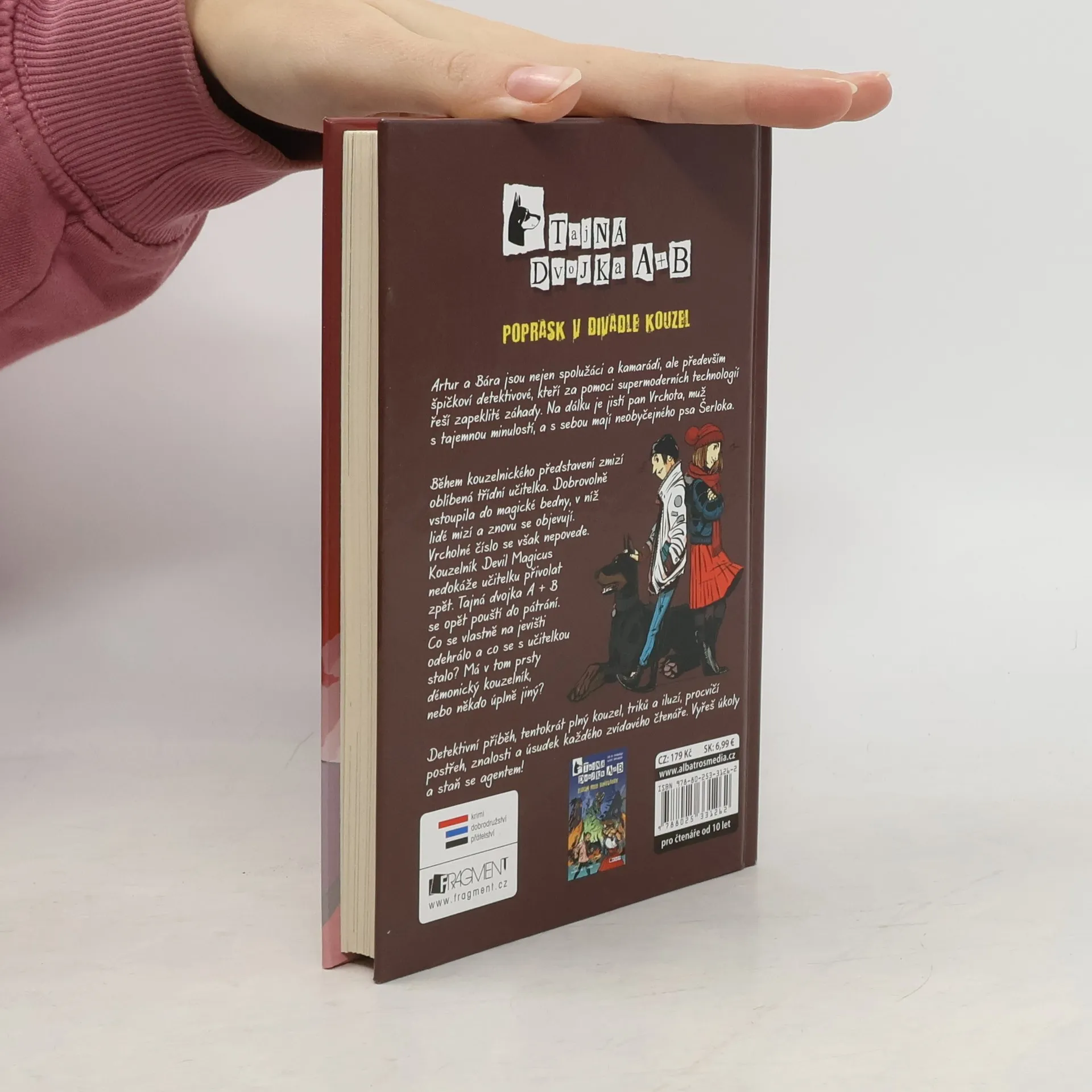 Druhý díl detektivní série pro děti od mistrů české detektivky, tentokrát plný kouzel, triků a iluzí. Artur a Bára jsou nejen spolužáci a kamarádi, ale především špičkoví detektivové, kteří za pomoci supermoderních technologií řeší zapeklité záhady. Na dálku je jistí pan Vrchota, muž s tajemnou minulostí, a s sebou mají neobyčejného psa Šerloka. Během kouzelnického představení zmizí oblíbená třídní učitelka. Dobrovolně vstoupila do magické bedny, v níž lidé mizí a znovu se objevují. Vrcholné číslo se však nepovede. Kouzelník Devil Magicus nedokáže učitelku přivolat zpět. Tajná dvojka A + B se opět pouští do pátrání. Co se vlastně na jevišti odehrálo a co se s učitelkou stalo? Má v tom prsty démonický kouzelník, nebo někdo úplně jiný? Detektivní příběh, tentokrát plný kouzel, triků a iluzí, procvičí postřeh, znalosti a úsudek každého zvídavého čtenáře. Vyřeš úkoly a staň se agentem!