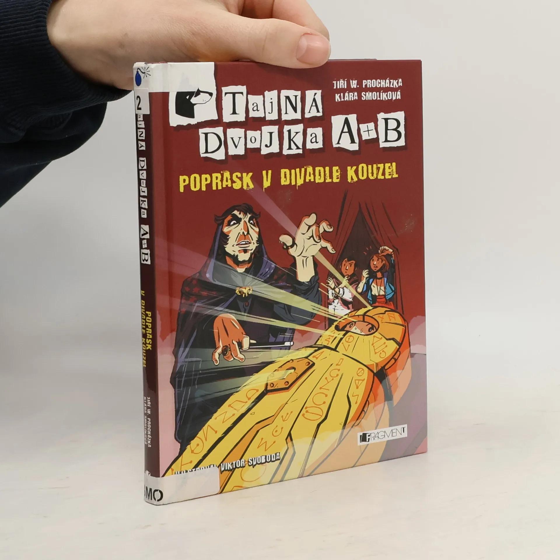 Druhý díl detektivní série pro děti od mistrů české detektivky, tentokrát plný kouzel, triků a iluzí. Artur a Bára jsou nejen spolužáci a kamarádi, ale především špičkoví detektivové, kteří za pomoci supermoderních technologií řeší zapeklité záhady. Na dálku je jistí pan Vrchota, muž s tajemnou minulostí, a s sebou mají neobyčejného psa Šerloka. Během kouzelnického představení zmizí oblíbená třídní učitelka. Dobrovolně vstoupila do magické bedny, v níž lidé mizí a znovu se objevují. Vrcholné číslo se však nepovede. Kouzelník Devil Magicus nedokáže učitelku přivolat zpět. Tajná dvojka A + B se opět pouští do pátrání. Co se vlastně na jevišti odehrálo a co se s učitelkou stalo? Má v tom prsty démonický kouzelník, nebo někdo úplně jiný? Detektivní příběh, tentokrát plný kouzel, triků a iluzí, procvičí postřeh, znalosti a úsudek každého zvídavého čtenáře. Vyřeš úkoly a staň se agentem!
