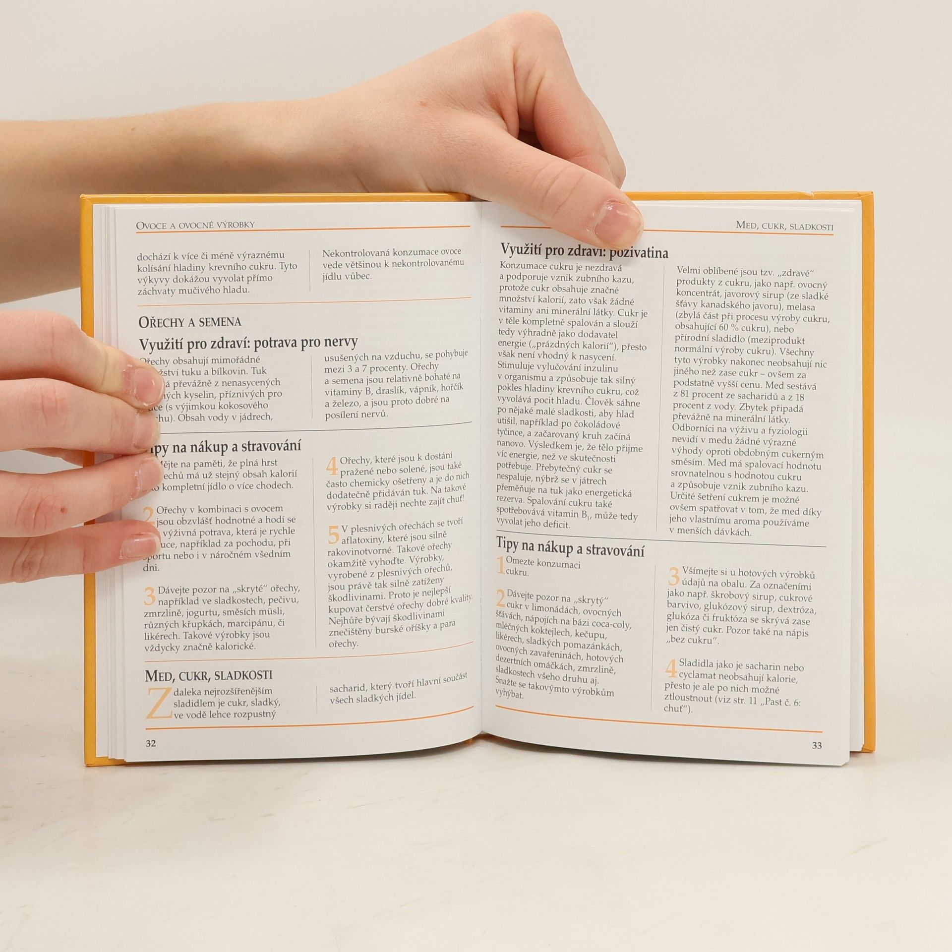Po přehledném všeobecném pojednání o potravinách i tzv. kalorických pastech podává knížka přehledné tabulky potravin uspořádaných podle druhů. U každého druhu, ale i jeho úpravy (smažení, sušení, kompotování aj.) jsou udány kalorické hodnoty a poznámky o obsahu tuků, cukrů a bílkovin. Příručka pro zdravou výživu obsahuje všeobecné pokyny i podrobné tabulky kalorií obsažených v jednotlivých druzích potravin. Obsahuje tabulku kalorií a tuků.