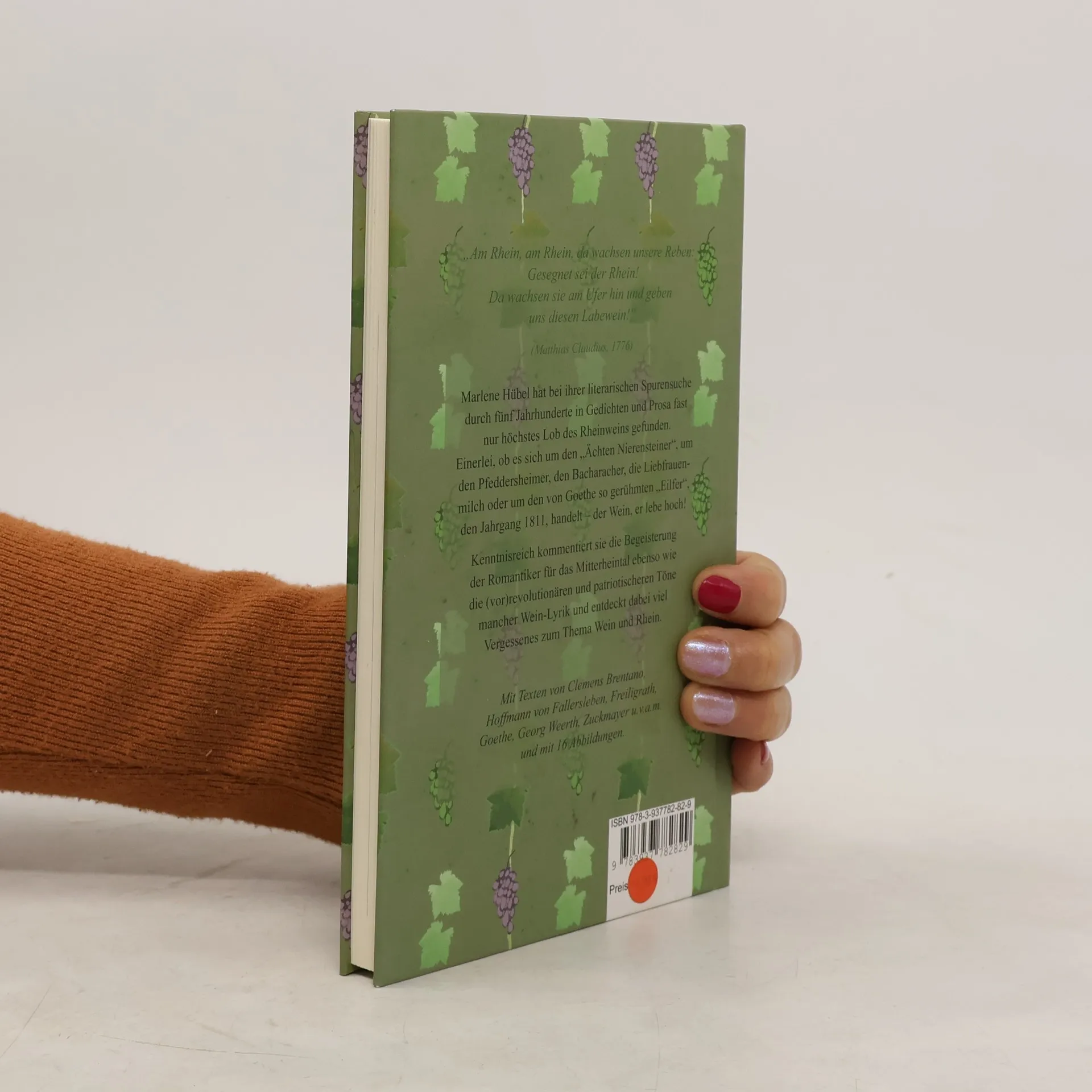 „Am Rhein, am Rhein, da wachsen unsere Reben: Gesegnet sei der Rhein! Da wachsen sie am Ufer hin und geben uns diesen Labewein!“ (Matthias Claudius) Marlene Hübel hat bei ihrer literarischen Spurensuche durch fünf Jahrhunderte in Gedichten und Prosa fast nur höchstes Lob des Rheinweins gefunden. Einerlei, ob es sich um den „Ächten Nierensteiner“, um den Pfeddersheimer, den Bacharacher, die Liebfrauenmilch oder um den von Goethe so gerühmten „Eilfer“, den Jahrgang 1811, handelt – der Wein, er lebe hoch! Kenntnisreich kommentiert sie die Begeisterung der Romantiker für das Mitterheintal ebenso wie die (vor)revolutionären und patriotischeren Töne mancher Wein-Lyrik und entdeckt dabei viel Vergessenes zum Thema Wein und Rhein. Mit Texten von Clemens Brentano, Hoffmann von Fallersleben, Freiligrath, Goethe, Georg Weerth, Zuckmayer u. v. a. m. und mit 16 Abbildungen.