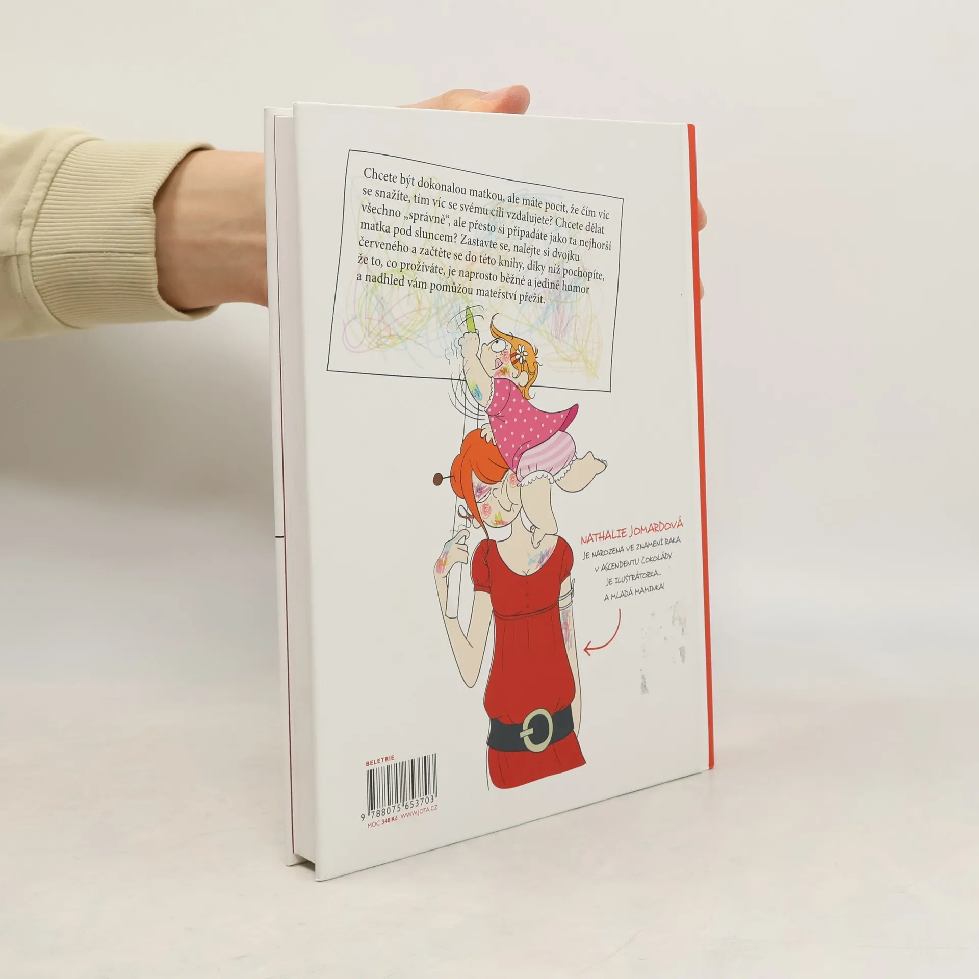Deník nepřipravené matky. Na těhotenském testu se objevila druhá čárka a vy záříte štěstím. Těšíte se na tu krásnou dobu, kdy budete nosit pod srdcem plod vaší lásky. A ještě víc se těšíte, až se to malé narodí, budete ho milovat, zbožňovat, bude to to nejkrásnější, nejchytřejší a nejmilejší dítě pod sluncem a vy budete ta nejšťastnější žena. Rozhodla jste se být dobrou matkou, a tak čtete všechny knihy a sledujete ty nejmódnější blogy, které radí, jak dělat vše „správně“. A pak přijde porod a každodenní realita. A vy zjišťujete, že vaše nejúžasnější miminko se ani zdaleka nechová tak, jak jste si vysnila, a všechny ty chytré rady vám jsou naprosto k ničemu. Pomalu necháváte stranou všechny teze studovaných psychologů, postupně opouštíte svá přesvědčení, která jste si vysnila v těhotenství, a padáte na tvrdou zem. Váš život se smršťuje a vy máte jen jednu touhu – přežít. Nathalie Jomardová je nejen talentovaná ilustrátorka, ale také matka, která se umí na výchovu podívat s nadhledem a s notnou dávkou humoru. Její kniha by neměla chybět na žádné toaletě, na které se může unavená matka zamknout a získat tak pár minut sama pro sebe. Varování č. 1: Nečtěte v přeplněné tramvaji, mohli byste poprskat spolucestující! Varování č. 2: Nedoporučujeme těhotným, mohly by přijít o iluze!
