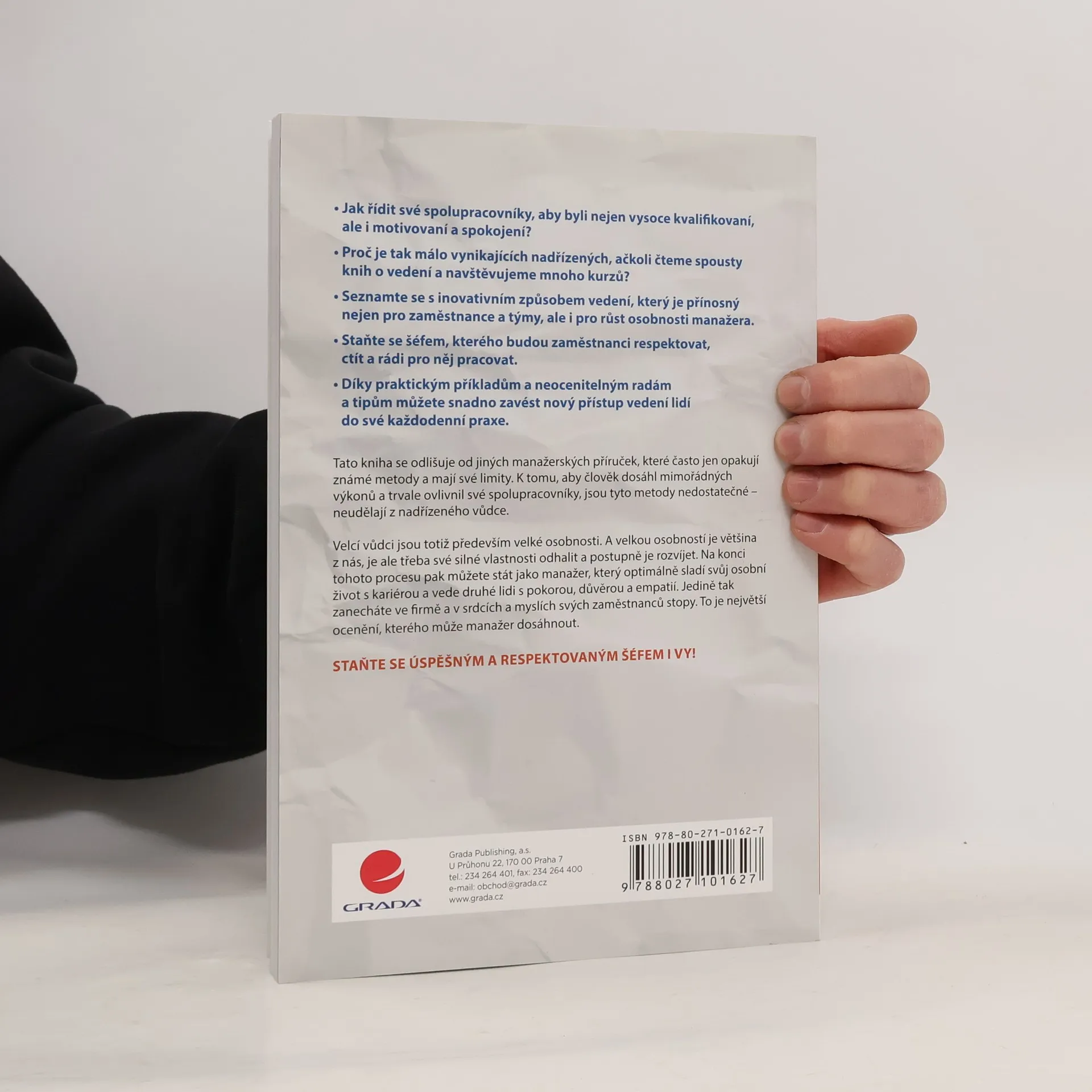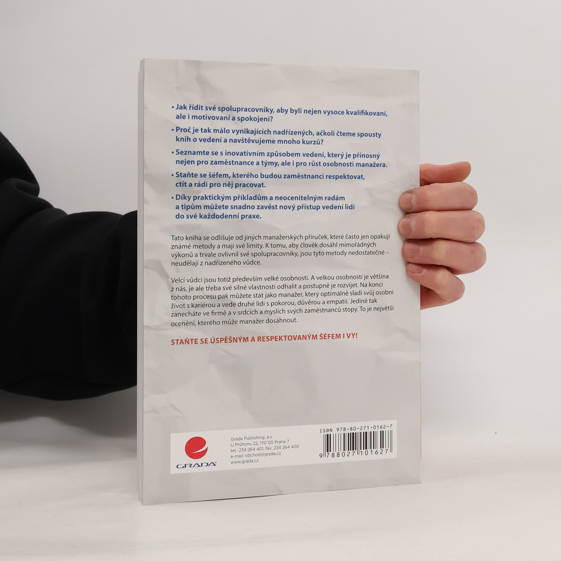 Jak získat loajalitu a respekt svého týmu. - Jak řídit své spolupracovníky, aby byli nejen vysoce kvalifikovaní, ale i motivovaní a spokojení? - Proč je tak málo vynikajících nadřízených, ačkoli čteme spousty knih o vedení a navštěvujeme mnoho kurzů? - Seznamte se s inovativním způsobem vedení, který je přínosný nejen pro zaměstnance a týmy, ale i pro růst osobnosti manažera. - Staňte se šéfem, kterého budou zaměstnanci respektovat, ctít a rádi pro něj pracovat. - Díky praktickým příkladům a neocenitelným radám a tipům můžete snadno zavést nový přístup vedení lidí do své každodenní praxe. Tato kniha se odlišuje od jiných manažerských příruček, které často jen opakují známé metody a mají své limity. K tomu, aby člověk dosáhl mimořádných výkonů a trvale ovlivnil své spolupracovníky, jsou tyto metody nedostatečné – neudělají z nadřízeného vůdce. Velcí vůdci jsou totiž především velké osobnosti. A velkou osobností je většina z nás, je ale třeba své silné vlastnosti odhalit a postupně je rozvíjet. Na konci tohoto procesu pak můžete stát jako manažer, který optimálně sladí svůj osobní život s kariérou a vede druhé lidi s pokorou, důvěrou a empatií. Jedině tak zanecháte ve firmě a v srdcích a myslích svých zaměstnanců stopy. To je největší ocenění, kterého může manažer dosáhnout. Staňte se úspěšným a respektovaným šéfem i vy!