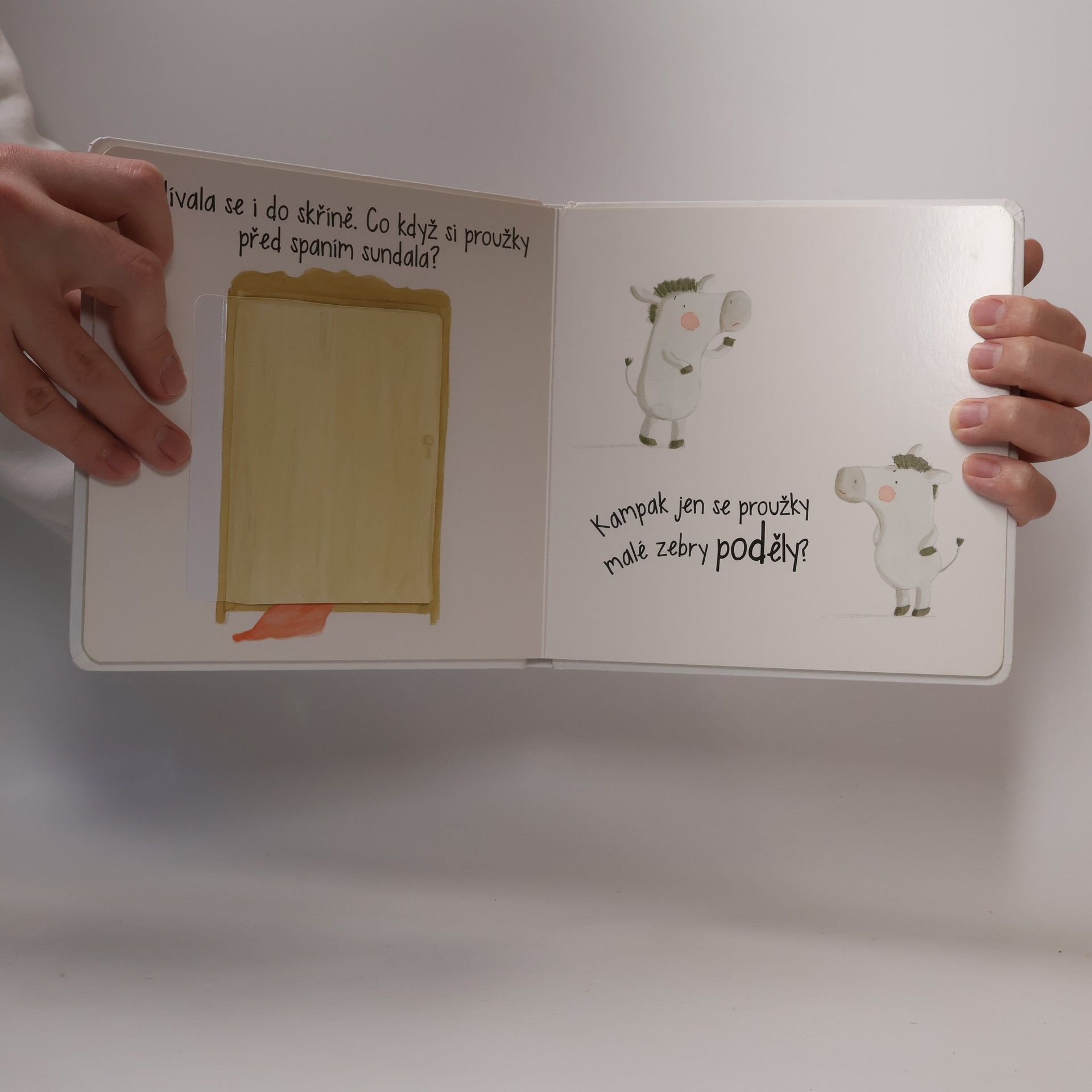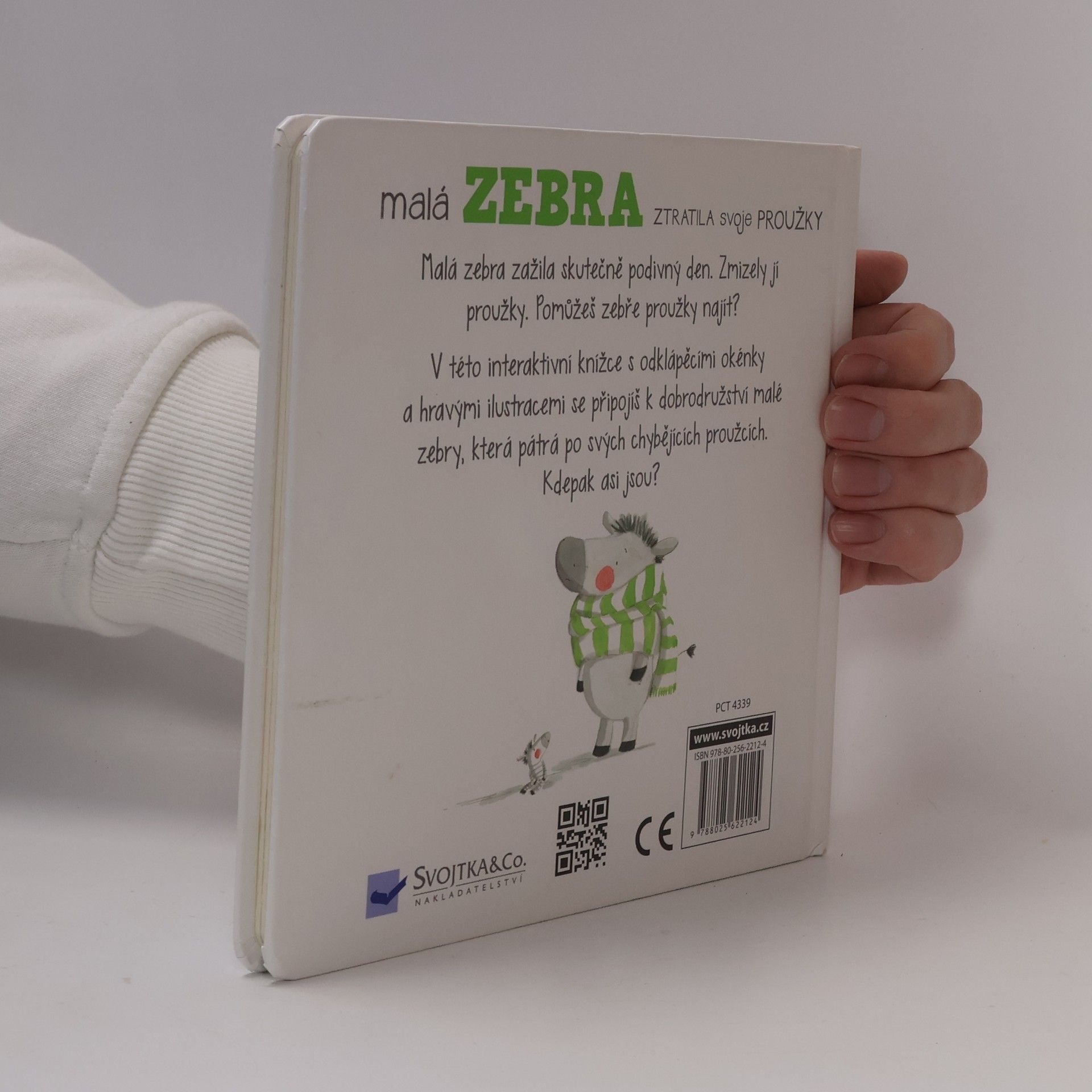 Malá zebra zažila skutečně podivný den. Zmizely ji proužky. Pomůžeš zebře proužky najít? V této interaktivní knížce s odklápěcími okénky a hravými ilustracemi se připojíš k dobrodružství malé zebry, která pátrá po svých chybějících proužcích. Kdepak asi jsou?