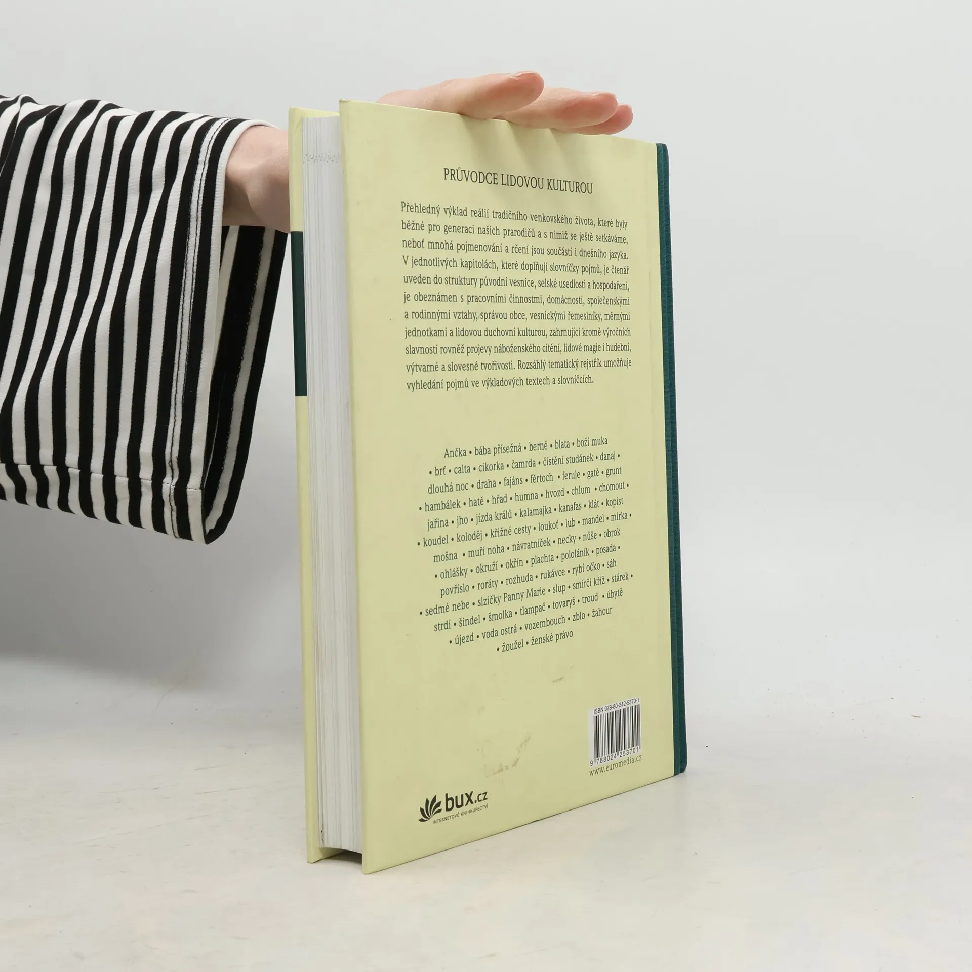 Přehledný výklad reálií tradičního venkovského života, které byly běžné pro generaci našich prarodičů a s nimiž se i my ještě setkáváme. Mnohá pojmenování, slovní spojení a rčení jsou součástí i dnešního hovorového jazyka, ne vždy jim však jejich uživatelé dobře rozumí. V jednotlivých kapitolách, které doplňující slovníčky pojmů, je čtenář uveden do struktury původní vesnice, selské usedlosti a hospodaření, je obeznámen s pracovními činnostmi, bydlením, domácností, stravou, oděvem, společenskými a rodinnými vztahy, pozdravy, správou obce, vesnickými řemeslníky, měrnými jednotkami a lidovou duchovní kulturou, zahrnující vedle výročních slavností projevy náboženského cítění, lidové magie i hudební, výtvarné a slovesné tvořivosti. Funkčnost publikace podporují tematické rejstříky umožňující vyhledávání pojmů z výkladových textů i slovníčků.