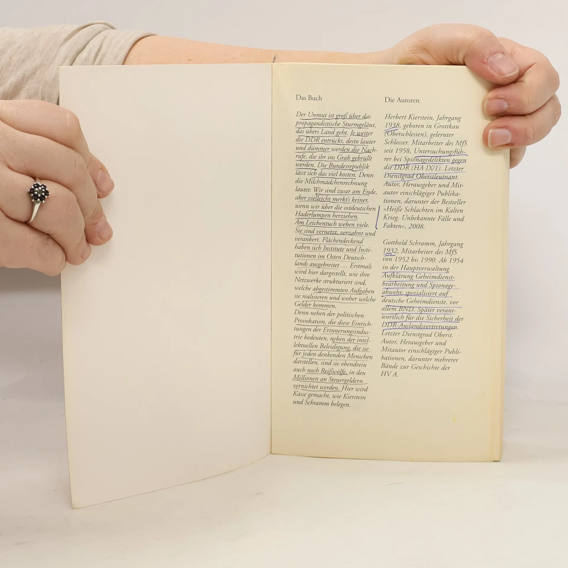 Busse speien unablässig Besucher aus, bei den Aktenverwaltern stapeln sich die Anträge, die Studien über den Staatsterror werden immer länger, die Zahl der Mauertoten wächst unablässig. Ein Leichnam kann sich gegen den Obduktionsbefund nicht wehren, befand der Dichter Heiner Müller, als die Erinnerungs- und Aufarbeitungsindustrie die Produktion aufnahm. Die Schlote qualmen stärker denn je. Doch auch der Widerspruch nimmt zu. Herbert Kierstein und Gotthold Schramm haben untersucht, wie in Stasi-Gedenkstätten und Stiftungen Wahrheit gebeugt und verzerrt wird. Sie decken die Netzwerke der Geschichtsleugner und -fälscher auf. Sie zeigen, wie Millionen von Steuergeldern eingesetzt werden, um ein Geschichtsbild durchzusetzen, das mit der historischen Wahrheit wenig bis nichts zu tun hat.