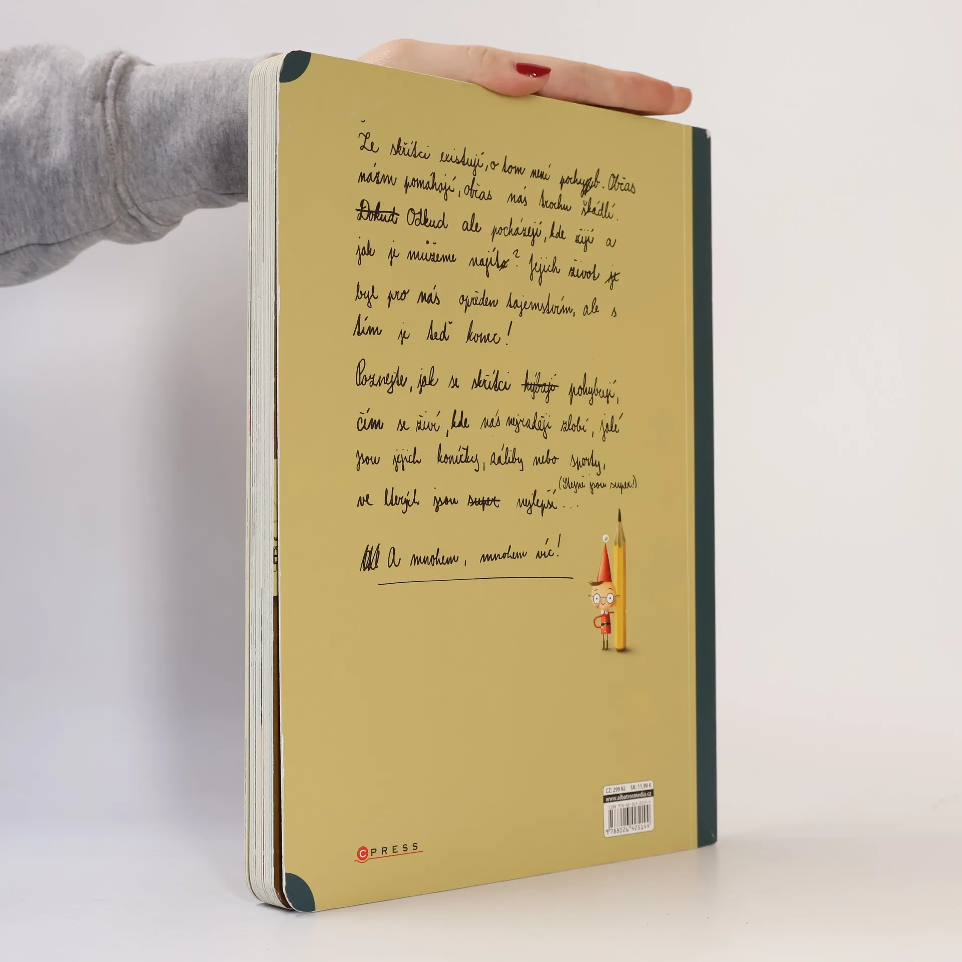 Že skřítci existují, o tom není pochyb. Občas nám pomáhají, občas nás trochu škádlí. Odkud ale pocházejí, kde žijí a jak je můžeme najít? Jejich život je pro nás stále opředen tajemstvím. Ale s tím je teď konec! Poznejte, jak se skřítci pohybují, čím se živí, kde nás nejraději zlobí, jaké jsou jejich koníčky, záliby nebo sporty, ve kterých jsou nejlepší… a mnohem, mnohem víc!