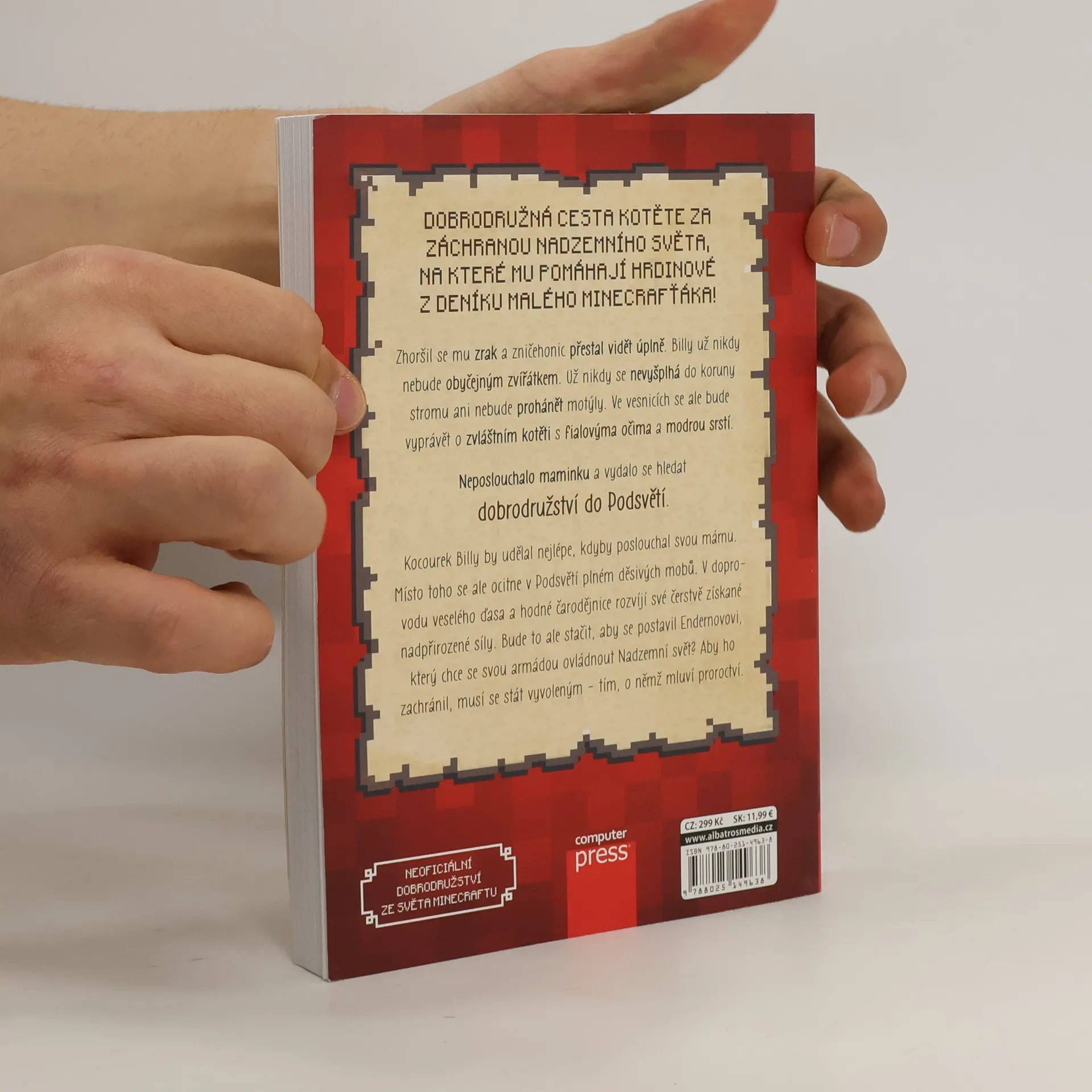 Zhoršil se mu zrak a zničehonic přestal vidět úplně. Billy už nikdy nebude obyčejným zvířátkem. Už nikdy se nevyšplhá do koruny stromu ani nebude prohánět motýly. Ve vesnicích se ale bude vyprávět o zvláštním kotěti s fialovýma očima a modrou srstí. Neposlouchalo maminku a vydalo se hledat dobrodružství do Podsvětí. Kocourek Billy by udělal nejlépe, kdyby poslouchal svou mámu. Místo toho se ale ocitne v Podsvětí plném děsivých mobů. V doprovodu veselého ďasa a hodné čarodějnice rozvíjí své čerstvě získané nadpřirozené síly. Bude to ale stačit, aby se postavil Endernovovi, který chce se svou armádou ovládnout Nadzemní svět? Aby ho zachránil, musí se stát vyvoleným - tím, o němž mluví proroctví.