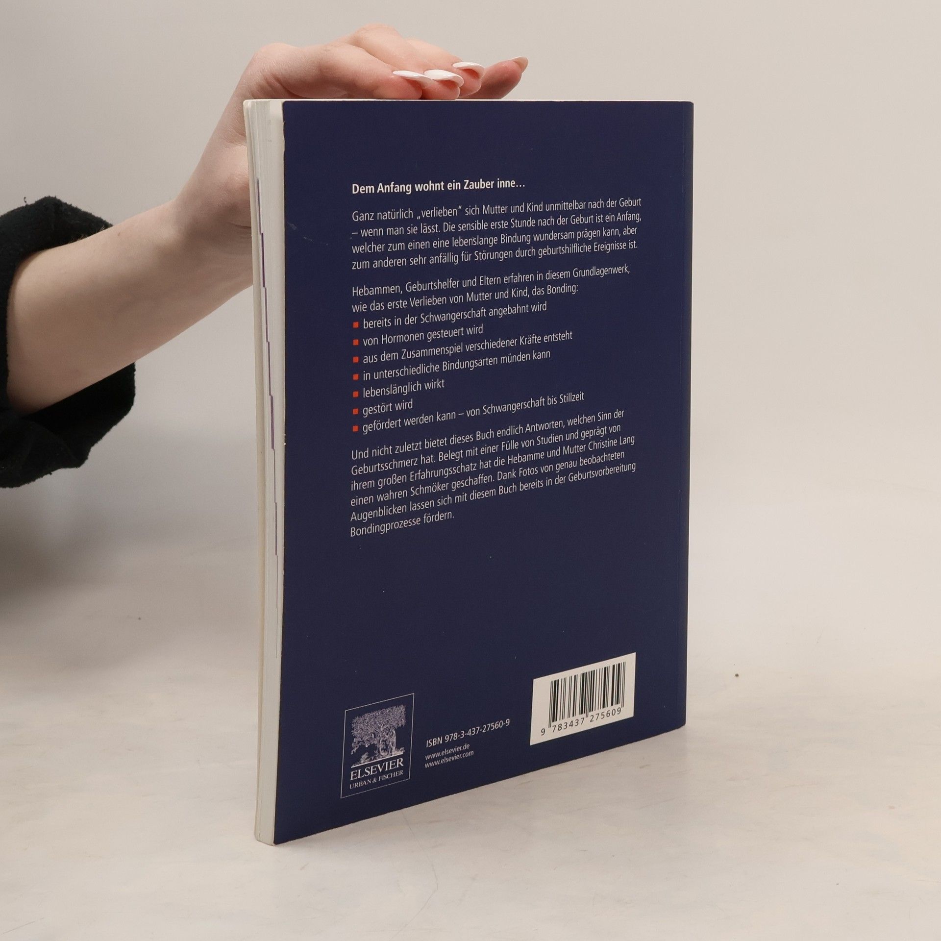 Ganz natürlich „verlieben“ sich Mutter und Kind unmittelbar nach der Geburt - wenn man sie lässt. Die sensible erste Stunde nach der Geburt ist ein Anfang, der eine lebenslange Bindung prägen kann, aber auch sehr anfällig für Störungen durch geburtshilfliche Ereignisse ist. Das Buch gibt Hebammen und allen in der Geburtshilfe Tätigen praxisorientierte Hinweise, wie die Bonding -Phase optimal gefördert und unterstützt werden kann. Dabei werden neben den so genannten normalen Situationen auch Problemsituationen wie Frühgeburt oder Kaiserschnitt besprochen. Dieses Buch hilft Hebammen, den gestiegenen Ansprüchen der Gebärenden an eine „humane“ Geburt gerecht zu werden und den „sozialen“ Start in das Leben bestmöglich zu gestalten. Mit vielen praktischen Tipps und Fotos - ideal zur Geburtsvorbereitung sowie -begleitung Basierend auf internationalen Studien Leicht und nachvollziehbar zu lesen