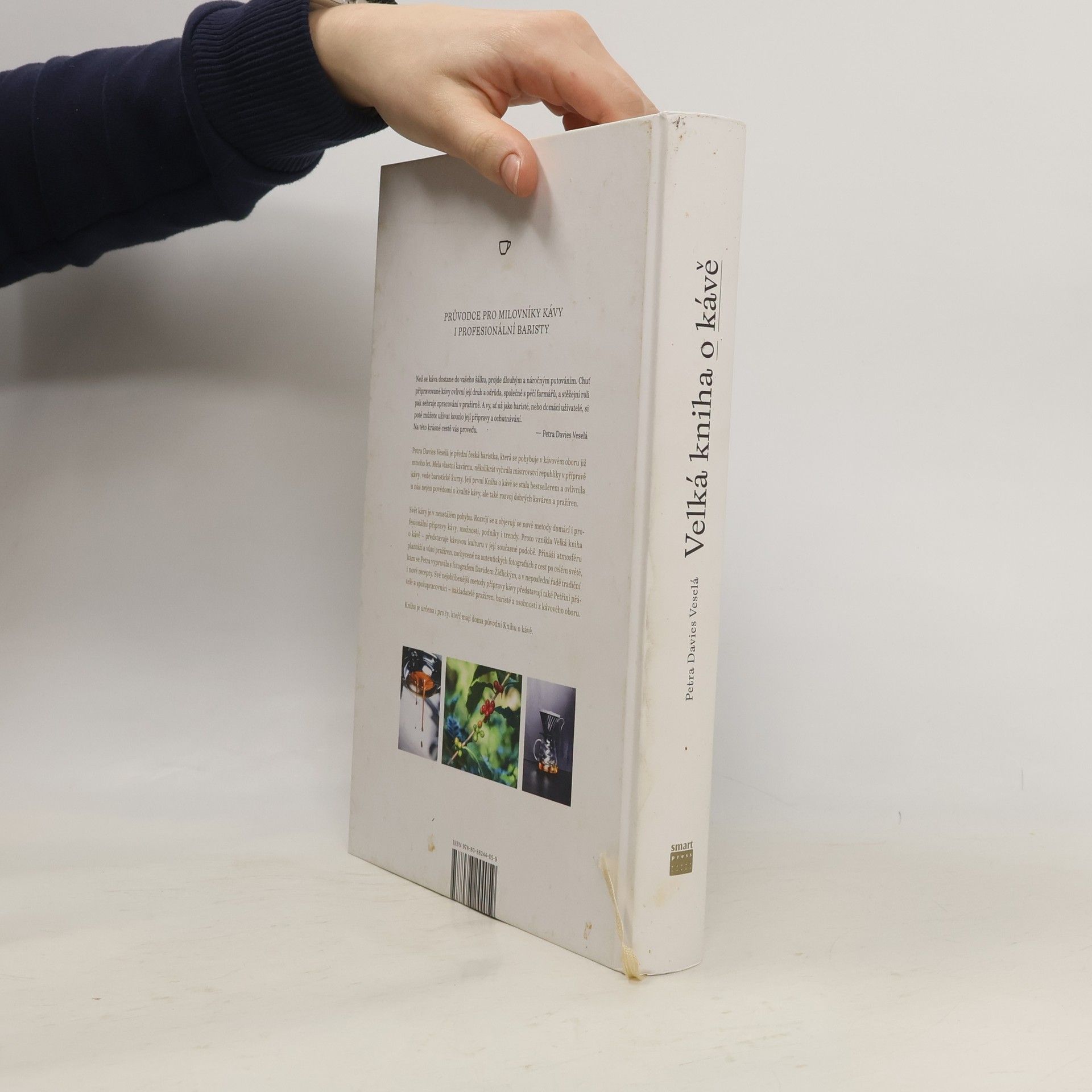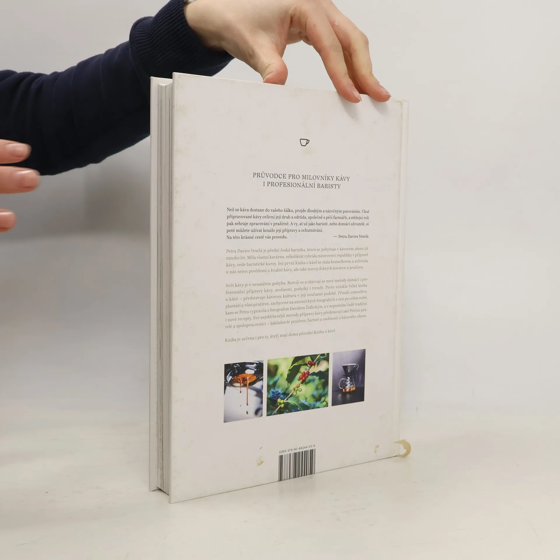 Petra Davies Veselá je mistryní ČR v přípravě kávy, podílí se na mezinárodních soutěžích a vede baristické kurzy. Její první Kniha o kávě je v oboru zásadním titulem, kterého se prodalo přes 29 000 ks. Rozšířila a aktualizovala svou první úspěšnou Knihu o kávě. Sepsala spoustu nových poznatků a zohledňuje své nové zkušenosti i velký rozkvět kávové kultury. Kniha je určena i těm, kteří svou první Knihu o kávě mají – obsahuje zcela nové fotografie a mnoho nových informací včetně nových receptů kávových nápojů. Nádherné nové fotografie vtáhnou čtenáře do děje. Zavedou je přímo na kávové plantáže, do pražíren či k zajímavým osobnostem z oboru. Kniha seznamuje s řadou nových metod přípravy kávy a receptur, s domácími i profesionálními mlýnky a kávovary a další vybavením. Také v ní najdete i praktické rady jak založit a úspěšně provozovat vlastní podnik. Velkorysý formát a výjimečné vizuální, grafické a obrazové zpracování. Ideální dárek pro kohokoli, kdo miluje kávu. Pro běžné spotřebitele, kteří si dobrou kávu rádi uvaří doma, ale i pro profesionální kavárníky a baristy.