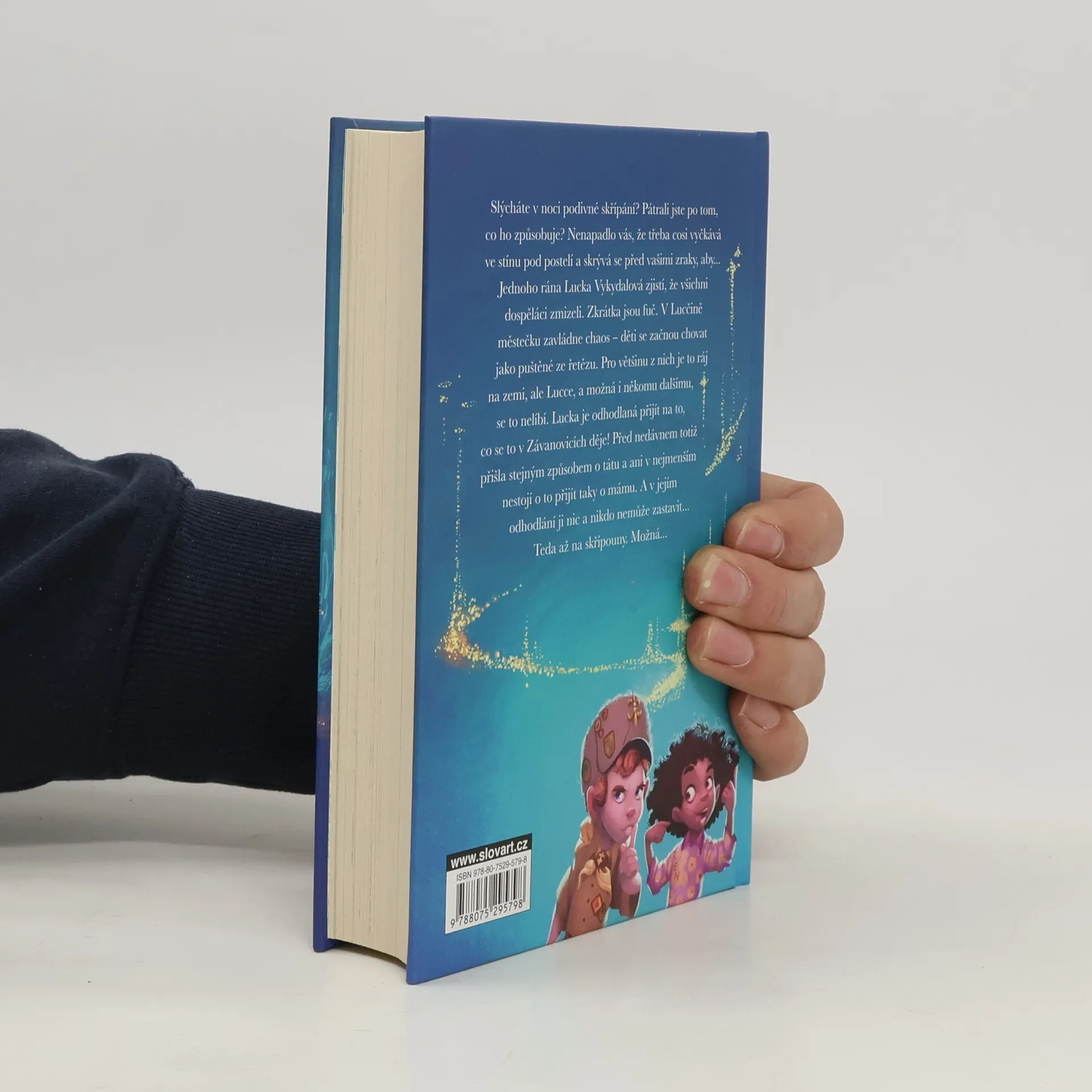 Slýcháte v noci podivné skřípání? Pátrali jste po tom, co ho způsobuje? Nenapadlo vás, že třeba cosi vyčkává ve stínu pod postelí a skrývá se před vašimi zraky, aby… Jednoho rána Lucka Vykydalová zjistí, že všichni dospěláci zmizeli. Zkrátka jsou fuč. V Lucčině městečku zavládne chaos: děti se začnou chovat jako puštěné ze řetězu. Pro většinu z nich je to ráj na zemi, ale Lucce, a možná i někomu dalšímu, se to nelíbí. Lucka je odhodlaná přijít na to, co se to v Závanovicích děje! Před nedávnem totiž přišla stejným způsobem o tátu a ani v nejmenším nestojí o to přijít taky o mámu. A v jejím odhodlání ji nic a nikdo nemůže zastavit... teda, až na skřípouny. Možná…