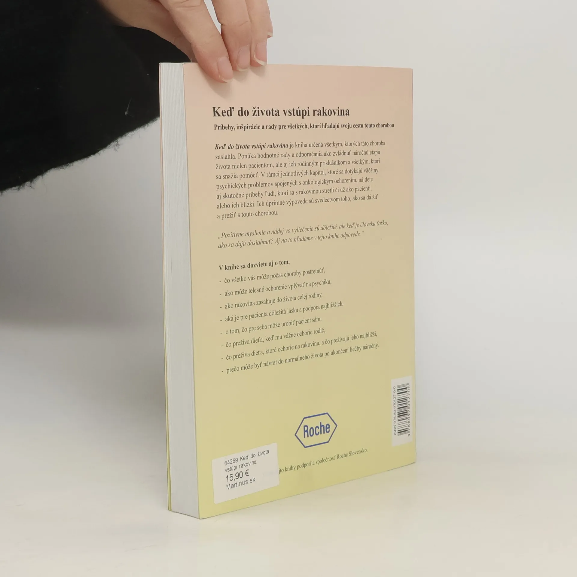 Kniha je určená všetkým, ktorých zasiahla rakovina, ponúkajúca cenné rady a odporúčania pre pacientov, ich rodiny a tých, ktorí chcú pomôcť. Obsahuje kapitoly zamerané na psychické problémy spojené s onkologickým ochorením, ako aj skutočné príbehy ľudí, ktorí sa s rakovinou stretli. Tieto úprimné výpovede ilustrujú, ako sa dá žiť a prežiť s touto chorobou. Kniha sa zaoberá otázkami, ako sa vyrovnať s ťažkým obdobím, aký vplyv má telesné ochorenie na psychiku, a akú úlohu zohráva podpora blízkych. Zisťuje, čo prežíva dieťa, keď mu ochorie rodič, a ako sa vyrovnáva dieťa s rakovinou. Taktiež sa venuje náročnosti návratu do normálneho života po liečbe. Autorka zdôrazňuje, že zatiaľ čo lekári sa sústreďujú na liečbu tela, duša pacienta často zostáva opomenutá. Kniha ponúka myšlienky a problémy, ktoré vychádzajú zo skutočných príbehov, a snaží sa poskytnúť odpovede na otázky o pozitívnom myslení a nádeji vo vyliečenie. Osobné výpovede o úspechoch i pádoch môžu inšpirovať tých, ktorí sa nachádzajú v ťažkej situácii. Každý si musí nájsť svoju vlastnú cestu, ako sa s chorobou vyrovnať, a kniha má byť sprievodcom na tejto ceste.