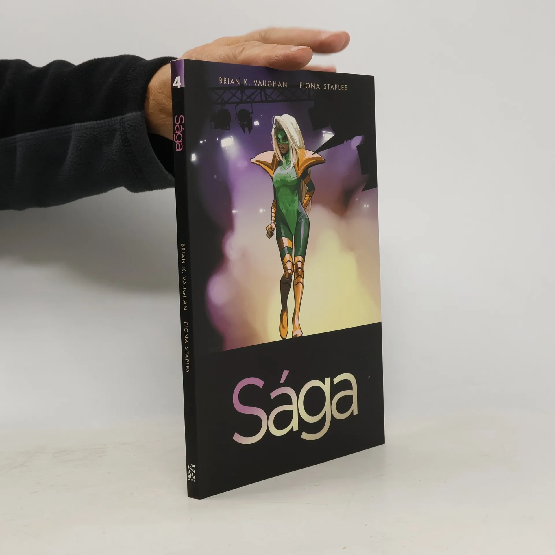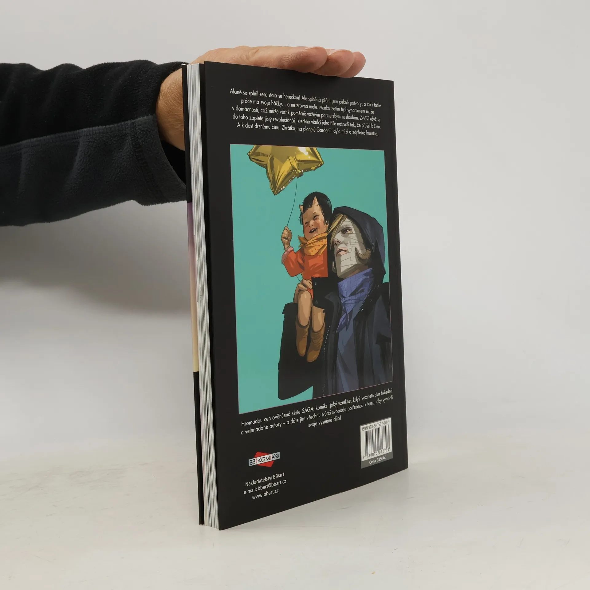 Alaně se splnil sen: stala se herečkou v poloilegálním virtuálním šou známém jako Otevřený okruh. Ale splněná přání jsou pěkné potvory, a tak i tahle práce má svoje háčky… a ne zrovna malé. Marko zatím trpí syndromem muže v domácnosti, což může vést k poměrně vážným partnerským neshodám. Zvlášť když se do toho zaplete robotický revolucionář, kterého aristokratičtí vládci Robotického království naštvali tak, že přešel k činu. A k dost drsnému činu. Zkrátka, na planetě Gardenii idyla mizí a zápletka houstne. Hromadou cen ověnčená série Sága: komiks, jaký vznikne, když vezmete dva hvězdné a velenadané autory – a dáte jim všechnu tvůrčí svobodu potřebnou k tomu, aby vytvořili svoje vysněné dílo! Spolu s davy fanoušků po celém světě sledujte osudy Marka a Alany, milenců a čerstvých rodičů, kteří přestali být vojáky v dlouhé válce, jež zachvátila skoro celý vesmír, a stali se dezertéry, které nemilosrdně pronásledují obě strany konfliktu. Protože pro mocipány by nebylo moc příjemné, kdyby se svět dozvěděl, že zástupci dvou nesmiřitelných ras se mohou nejen milovat, ale také plodit potomky…