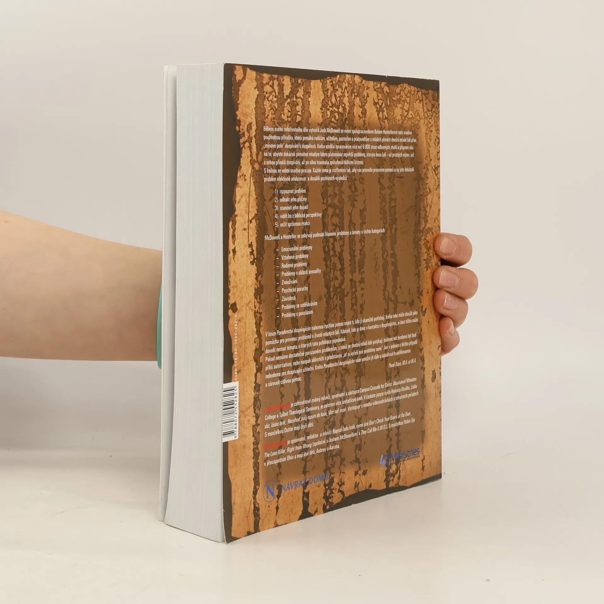 Podtitul: Snadno srozumitelný a moderní zdroj pomoci k padesáti hlavním problémům, jimž čelí mladí lidé. Josh McDowell a Bob Hostetler vytvořili praktickou příručku pro rodiče, učitele, pastory a pracovníky s mládeží, která pomáhá mladým lidem orientovat se v dospívání. Kniha, založená na více než 6000 stranách odborných studií, se zaměřuje na překonávání výzev, od běžných problémů dospívání po vážná traumata. Každé téma je strukturováno tak, aby usnadnilo analýzu a efektivní pomoc: rozpoznání problému, odhalení příčin, stanovení dopadu, biblická perspektiva a určení správné reakce. McDowell a Hostetler pokrývají 50 hlavních problémů v oblastech jako jsou emocionální, vztahové a rodinné problémy, sexualita, zneužívání, psychické poruchy, závislosti, vzdělávání a zaměstnání. Kniha nabízí rychlou pomoc nejen těm, kdo ji potřebují, ale také slouží jako prevence problémů v životě mladých lidí. Každý, kdo se setkává s dospívajícími, by měl být obeznámen s tématy, která publikace pokrývá. Bez dostatečného porozumění těmto problémům můžeme být buď příliš autoritativní, nebo naopak alibističtí. Kniha nám umožňuje nabídnout kvalifikovanou a citlivou pomoc.
