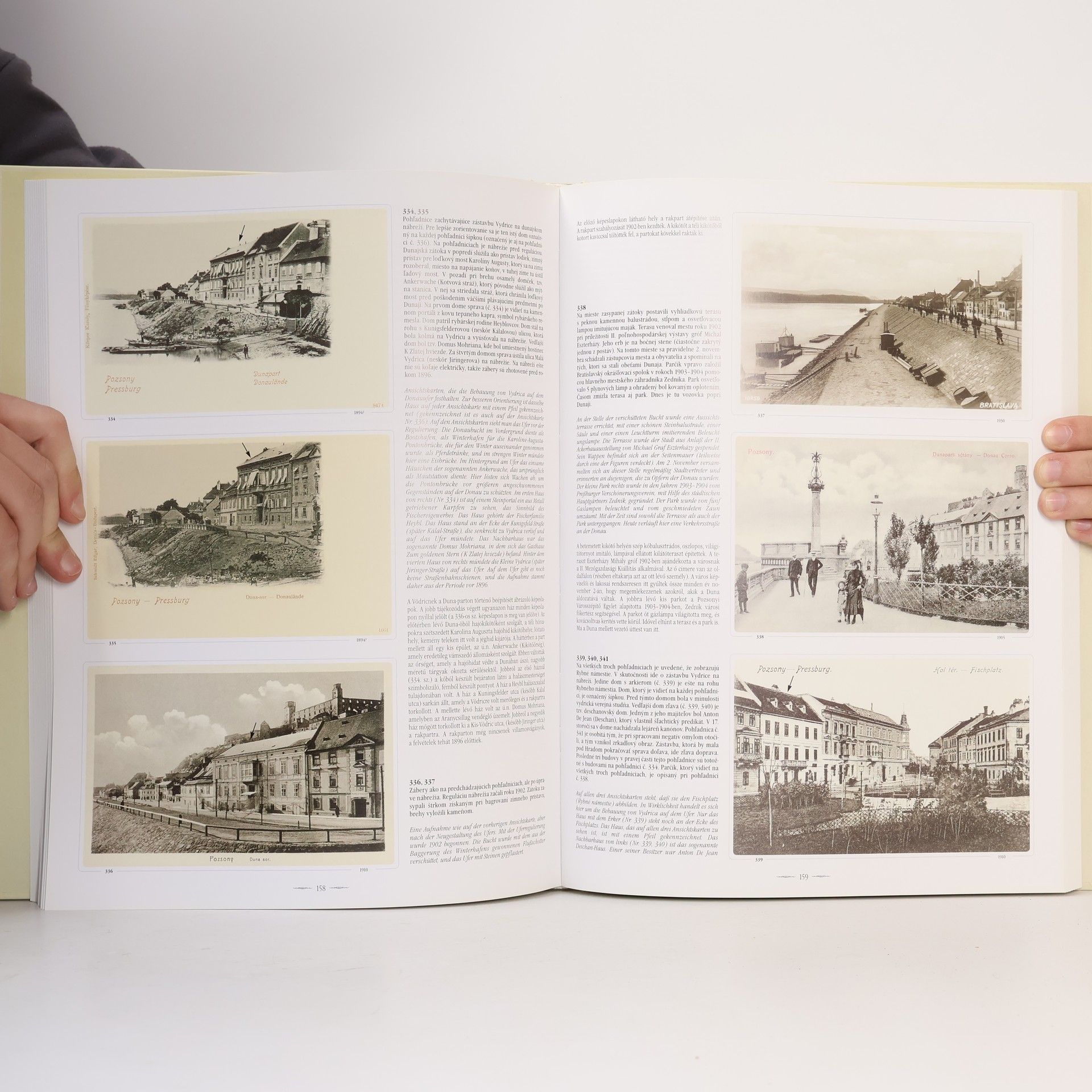 Publikácia, ktorá mapuje život hlavného mesta, obsahuje takmer 600 starých pohľadníc a fotografií z jeho histórie od osemdesiatych rokov 19. storočia až do roku 1945. Medzi nimi je aj niekoľko unikátnych záberov, ktoré sú uverejnené vôbec po prvýkrát, napr. najstaršia známa fotografia - kalotypia Bratislavy, ktorá zachytáva Kapucínsku ulicu a časť Župného námestia v pozadí s dominantou hradu, pravdepodobne z roku 1840. Obrazovú časť sprevádza pútavý, zaujímavý text o histórii jednotlivých bratislavských objektov a o udalostiach. Text má nemecký a maďarský preklad. Do knihy je zaradená aj kapitola o bratislavských ateliéroch a o histórii pohľadníc všeobecne. Kniha získala v roku 2005 prestížnu cenu revue pre kultúrne dedičstvo Pamiatky a múzeá.