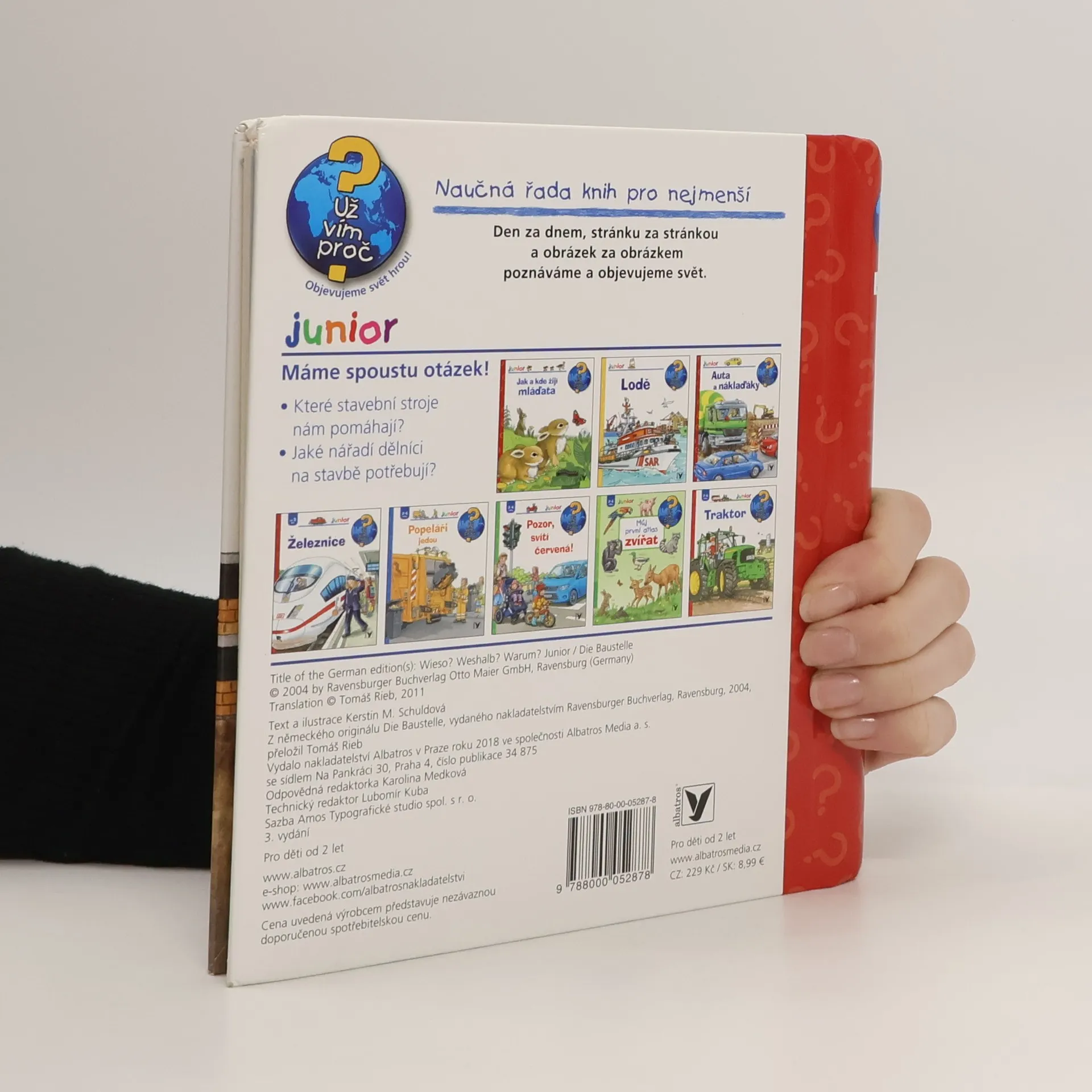 Naučná řada knih pro nejmenší v této malé knížce přichází s informacemi, jak se staví dům nebo jak se staví silnice. Co vše se může na stavbě stát, které stroje pomáhají, co dělá stavební dělník a jaké nářadí na stavbě řemeslníci potřebují. Zkrátka dítě zde najde odpovědi na spoustu otázek ve formě obrázků, ale i odborných názvů. Báječná kniha pro děti a pomocník pro mnohé rodiče, kteří musí neustále hledat odpovědi na zvědavé dětské proč.
