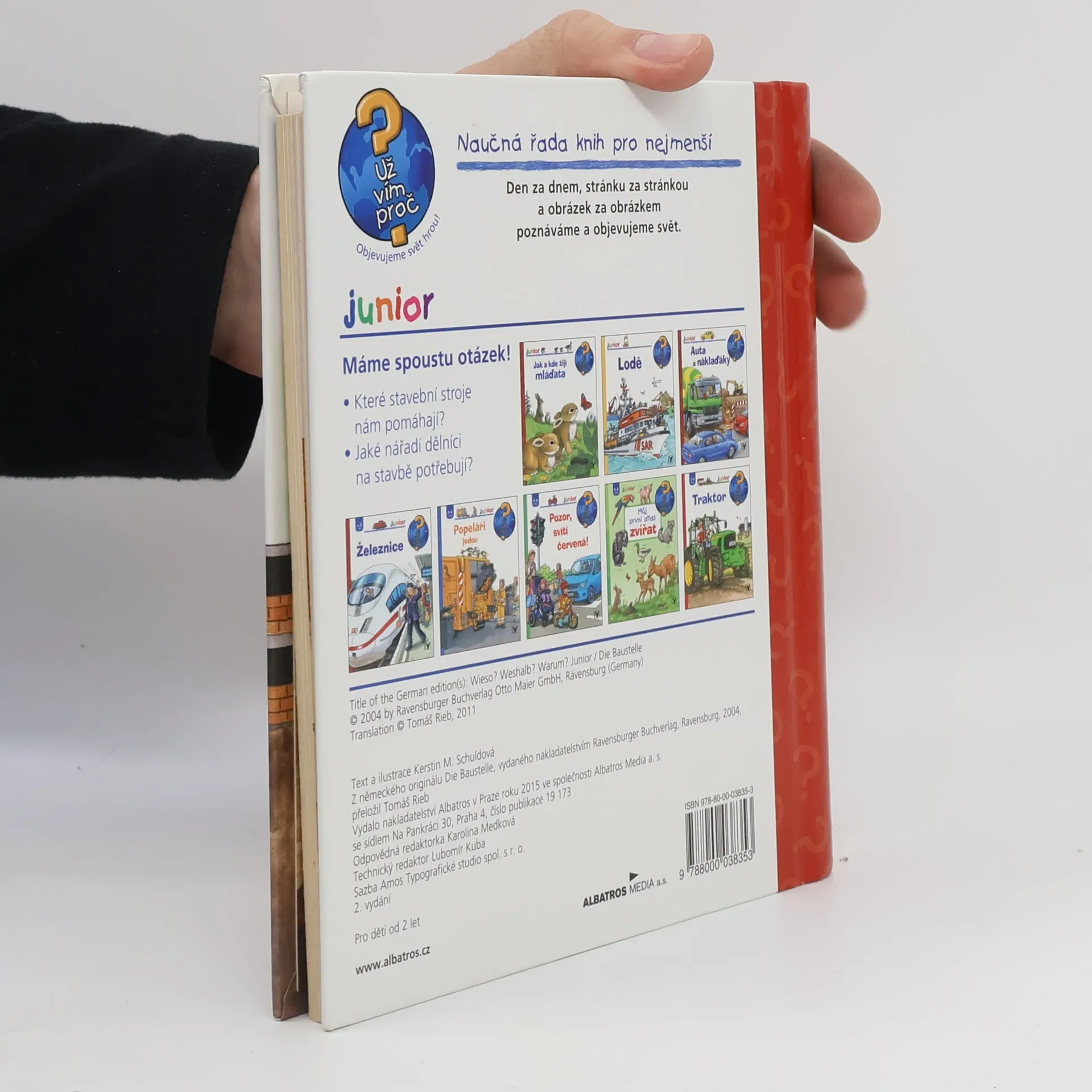 Naučná řada knih pro nejmenší v této malé knížce přichází s informacemi, jak se staví dům nebo jak se staví silnice. Co vše se může na stavbě stát, které stroje pomáhají, co dělá stavební dělník a jaké nářadí na stavbě řemeslníci potřebují. Zkrátka dítě zde najde odpovědi na spoustu otázek ve formě obrázků, ale i odborných názvů. Báječná kniha pro děti a pomocník pro mnohé rodiče, kteří musí neustále hledat odpovědi na zvědavé dětské proč.