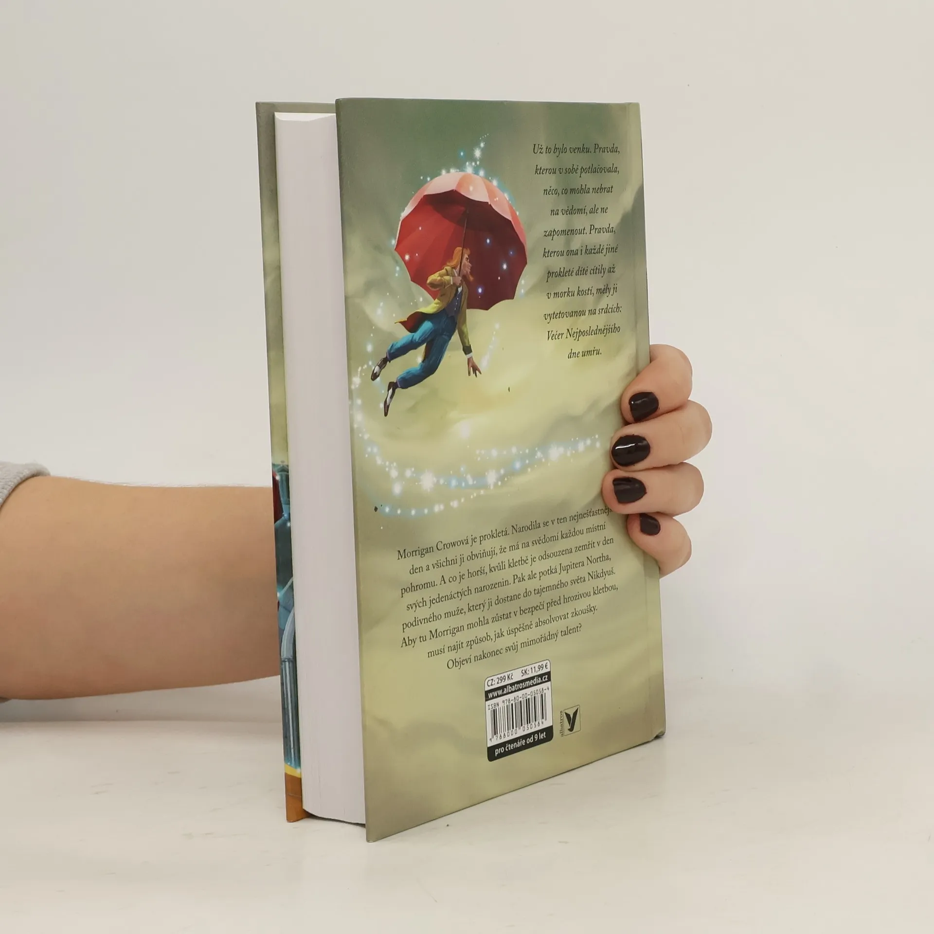 1. díl světově úspěšné série z kouzelnického světa. Morrigan Crowová je prokletá. Narodila se v ten nejnešťastnější den a všichni ji obviňují, že má na svědomí každou místní pohromu. A co je horší, kvůli kletbě je odsouzena zemřít v den svých jedenáctých narozenin. Pak ale potká Jupitera Northa, podivného muže, který ji dostane do tajemného světa Nikdyuš. Aby tu Morrigan mohla zůstat v bezpečí před hrozivou kletbou, musí najít způsob, jak úspěšně absolvovat zkoušky. Objeví nakonec svůj mimořádný talent?