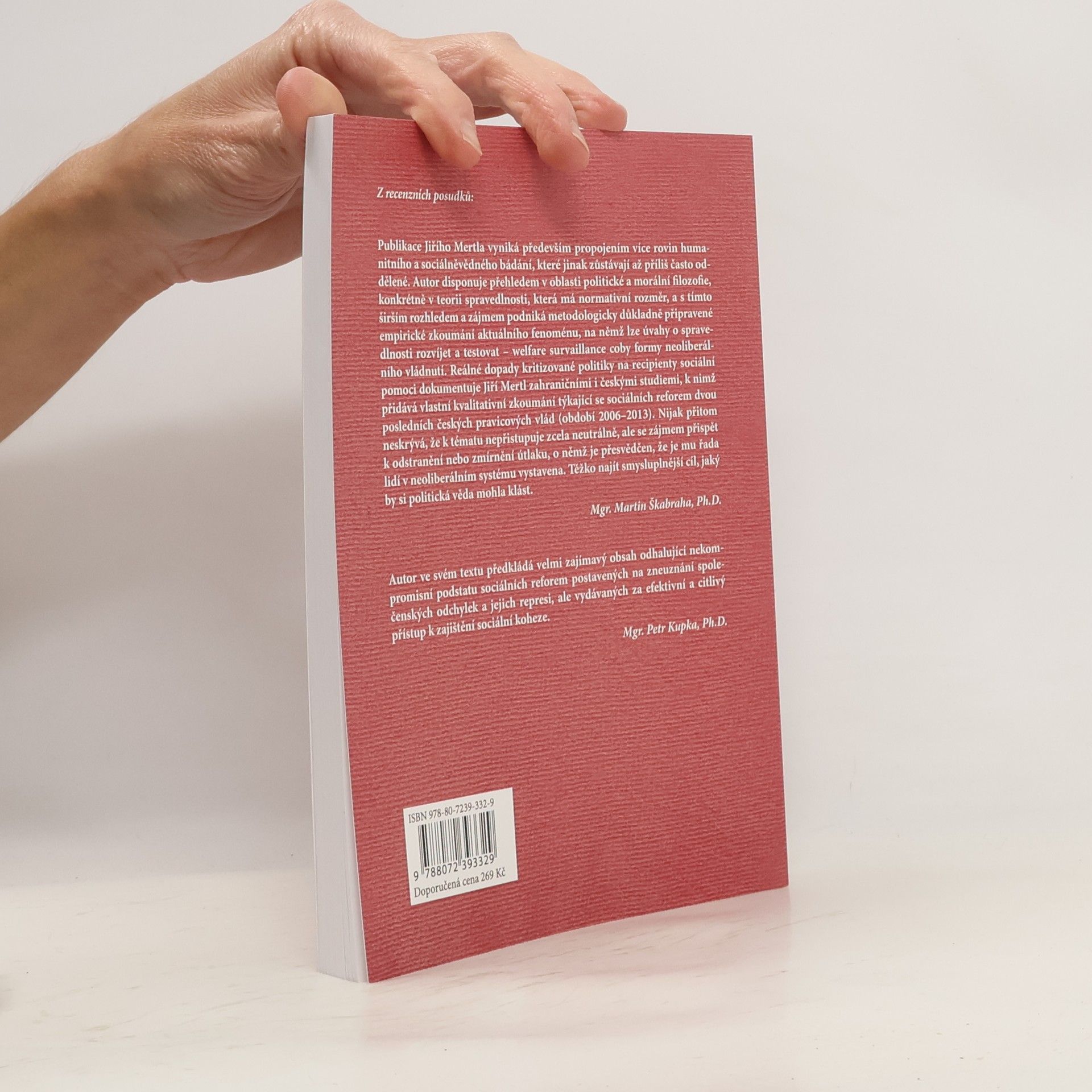 Publikace předkládá analýzu sociálních reforem, které v České republice probíhaly v letech 2006—2013. Jsou zasazeny do širšího kontextu neoliberální revoluce, jež započala v 80. letech 20. století s cílem transformovat západní sociální systémy v souladu s principem osobní zodpovědnosti. Tyto neoliberalizované systémy jsou založeny na represivních opatřeních, jež mají občany, kteří se ocitli ve složité životní situaci, „motivovat“, „napravit“ a „naučit“ větší zodpovědnosti. Tato opatření, souhrnně označována jako welfare surveillance, však v praxi spíše marginalizují, stigmatizují a v některých případech i symbolicky kriminalizují ty, kdo potřebují sociální pomoc.