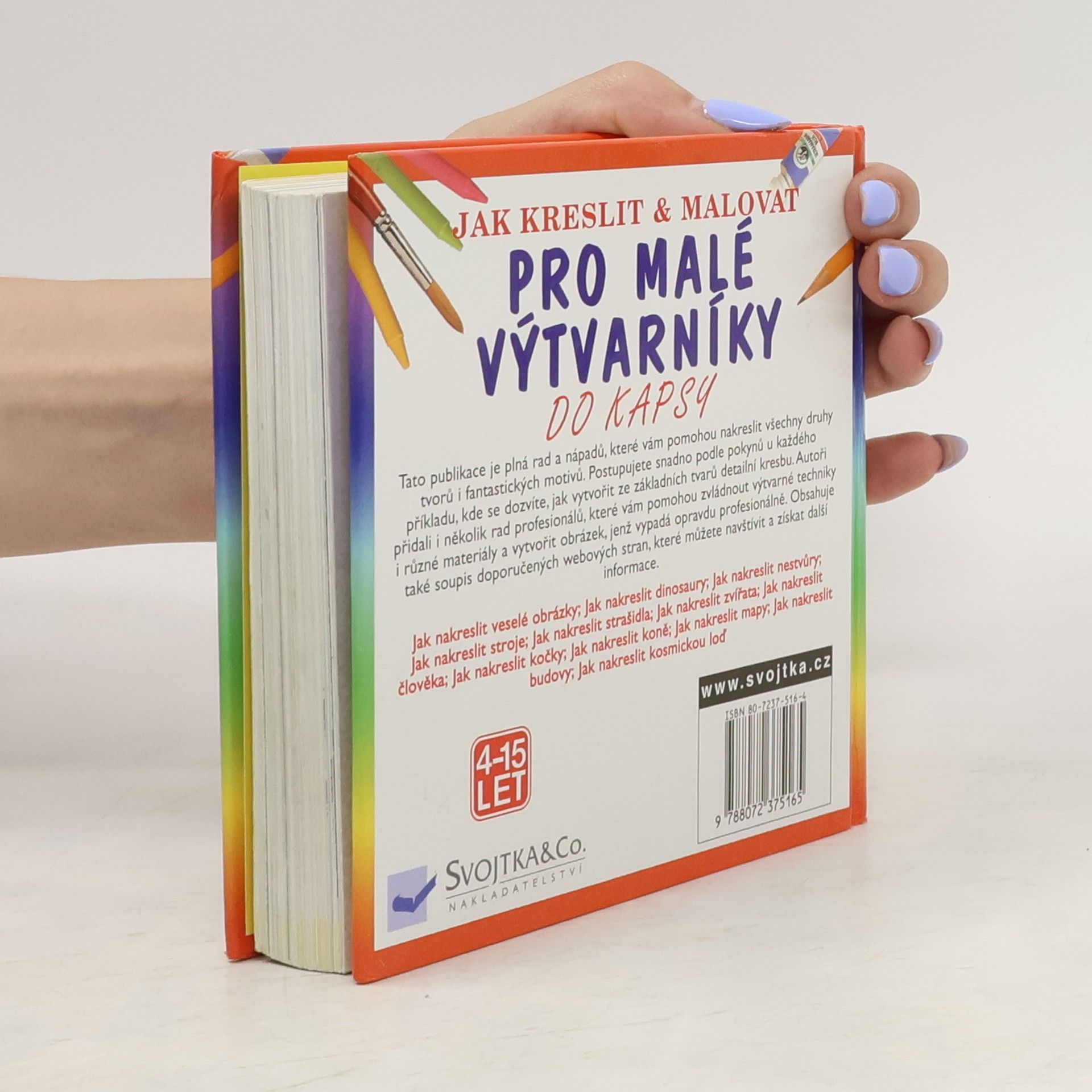Tato publikace je plná rad a nápadů, které vám pomohou nakreslit všechny druhy tvorů i fantastických motivů. Postupujete snadno podle pokynů u každého příkladu, kde se dozvíte, jak vytvořit ze základních tvarů detailní kresbu. Autoři přidali i několik rad profesionálů, které vám pomohou zvládnout výtvarné techniky i různé materiály a vytvořit obrázek, jenž vypadá opravdu profesionálně. Obsahuje také soupis doporučených webových stran, které můžete navštívit a získat další informace. Dozvíte se jak nakreslit veselé obrázky; jak nakreslit dinosaury; jak nakreslit nestvůry; jak nakreslit stroje; jak nakreslit strašidla; jak nakreslit zvířata; jak nakreslit člověka; jak nakreslit kočky; jak nakreslit koně; jak nakreslit mapy; jak nakreslit budovy; jak nakreslit kosmickou loď
