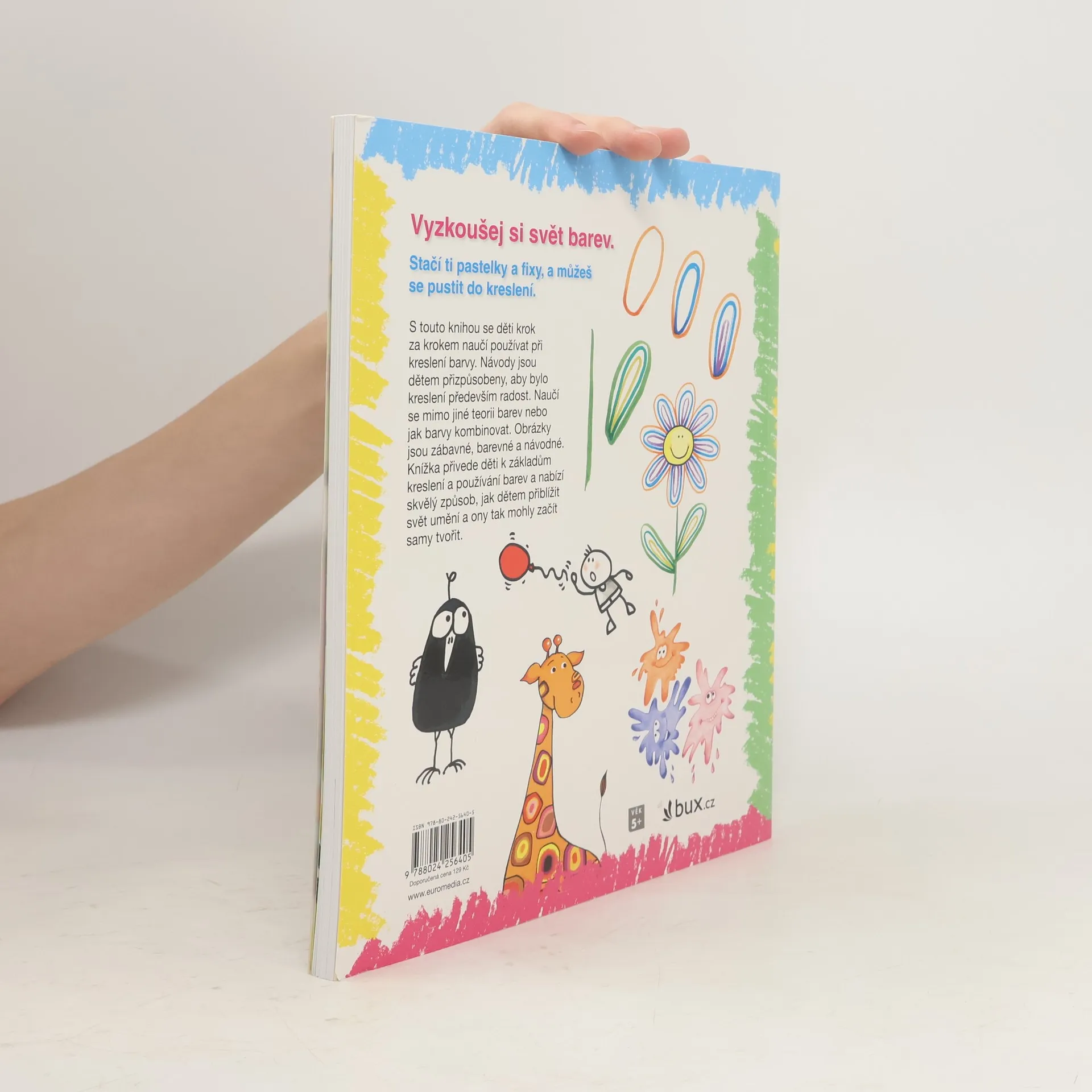 Vyzkoušej si svět barev. Stačí ti pastelky a fixy, a můžeš se pustit do kreslení. S touto knihou se děti krok za krokem naučí používat při kreslení barvy. Návody jsou dětem přizpůsobeny, aby bylo kreslení především radost. Naučí se mimo jiné teorii barev nebo jak barvy kombinovat. Obrázky jsou zábavné, barevné a návodné. Knížka přivede děti k základům kreslení a používání barev a nabízí skvělý způsob, jak dětem přiblížit svět umění a ony tak mohly začít samy tvořit.