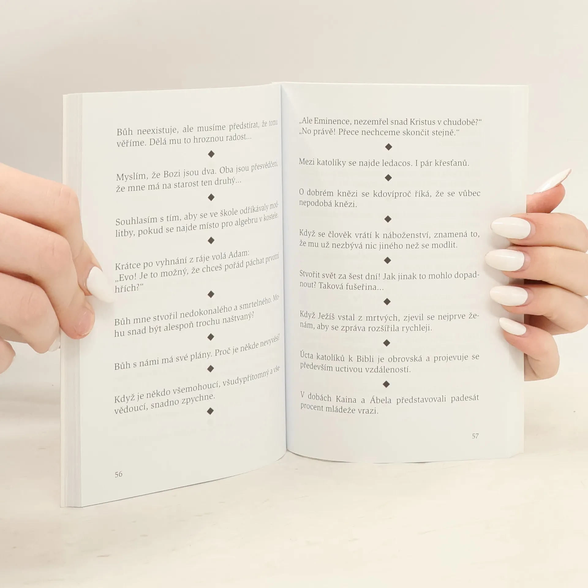 Humor je zdravý! A dalo by se říci, že léčí i duši. Právě z tohoto důvodu vám autor této knížky nabízí sbírku zábavných, avšak uctivých textů, jejichž pozadím jsou dějiny spásy. Jsou to vtipy, komické texty, klasika křesťanského humoru, proslulé sžíravé žertíky, které se nechtějí vysmívat Bohu, ale smát se spolu s ním těm postavičkám, které se dají občas potkat ve farnostech, v klášterech a na vatikánských chodbách, ba dokonce i v papežském paláci. Tato kniha je příležitostí, jak se pobavit a odpočinout si, ale vyzývá i k úvaze nad vybranou křesťanskou ironií, jež je vlastní světcům. Pravý křesťan se dokáže smát sám sobě.
