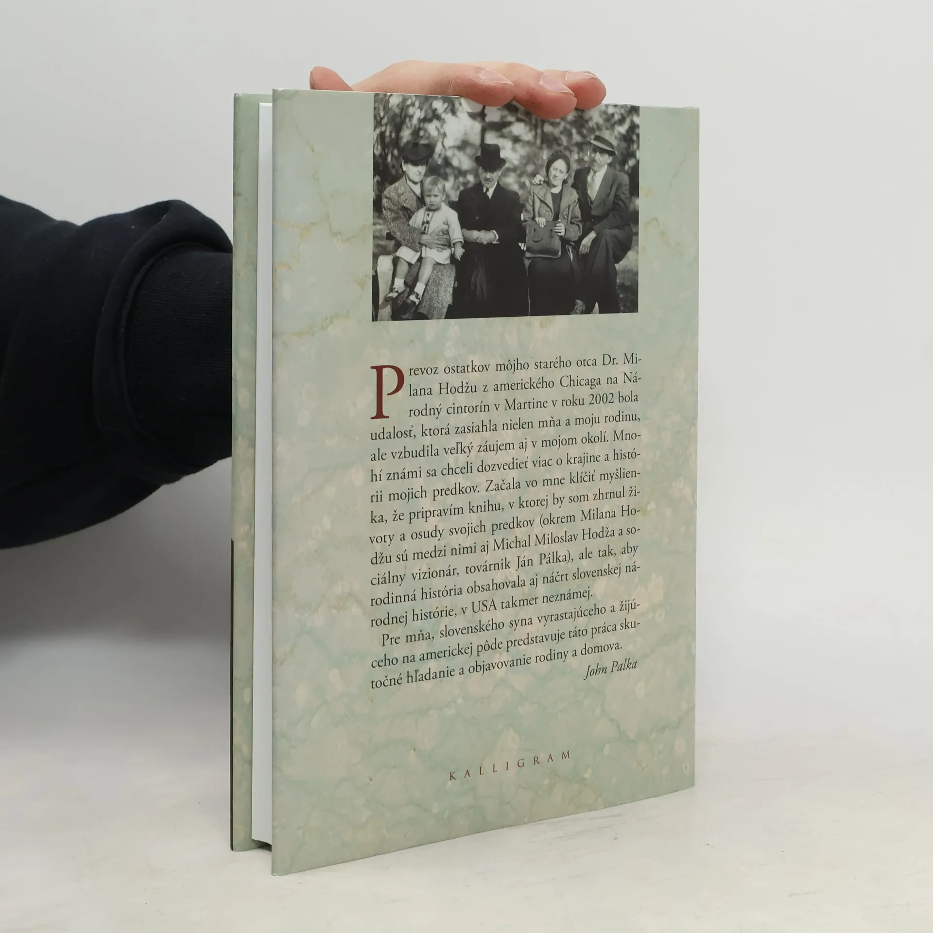 Slovo autora: Prevoz ostatkov môjho starého otca Dr. Milana Hodžu z amerického Chicaga na Národný cintorín v Martine v roku 2002 bola udalosť, ktorá zasiahla nielen mňa a moju rodinu, ale vzbudila veľký záujem aj v mojom okolí. Mnohí známi sa chceli dozvedieť viac o krajine a histórii mojich predkov. Začala vo mne klíčiť myšlienka, že pripravím knihu, v ktorej by som zhrnul životy a osudy svojich predkov /okrem Milana Hodžu sú medzi nimi aj Michal Miloslav Hodža a sociálny vizionár, továrnik Ján Pálka/, ale tak, aby rodinná história obsahovala aj náčrt slovenskej národnej histórie, v USA takmer neznámej. Pre mňa, slovenského syna vyrastajúceho a žijúceho na americkej pôde predstavuje táto práca skutočné hľadanie a objavovanie rodiny a domova.