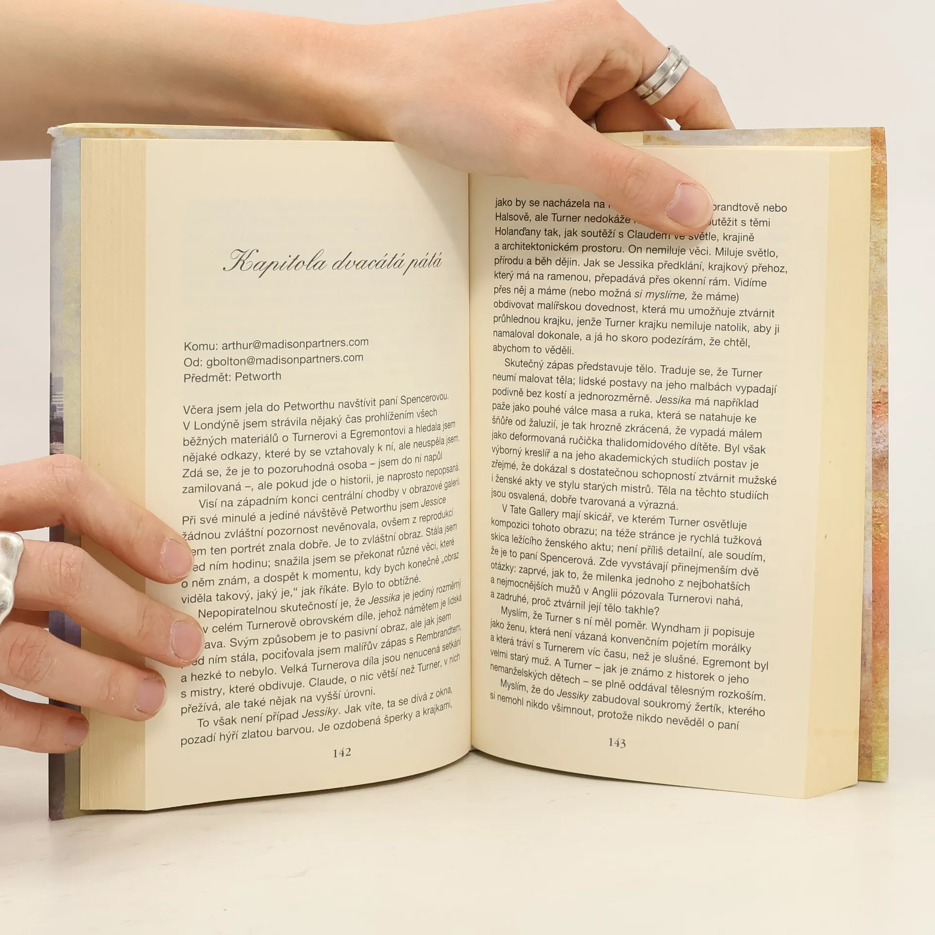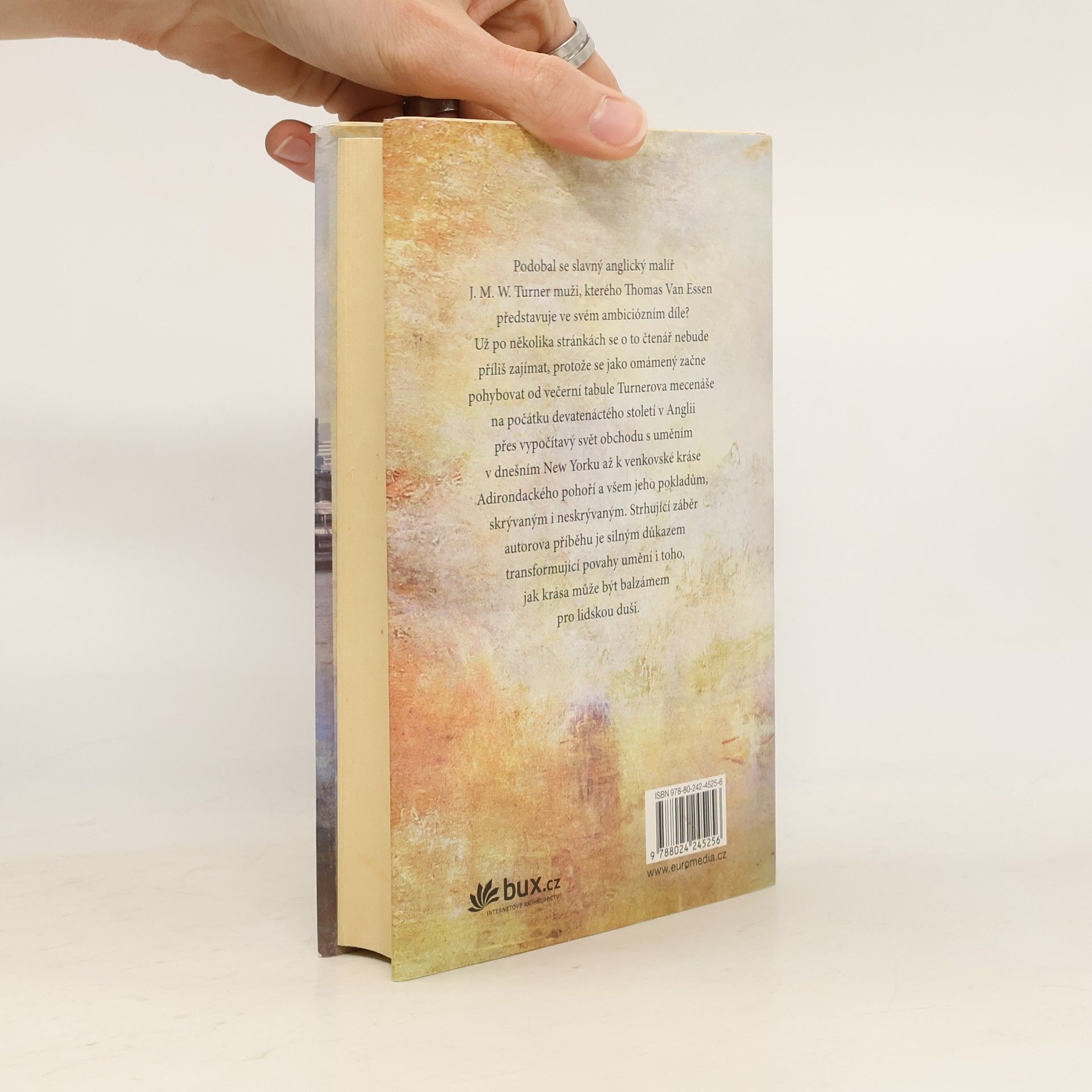 Ústřední postavou napínavého románu, rafinované mozaiky osobních vyprávění, je padesátník Henry ze současného New Yorku, který pracuje pro charitativní nadaci, děti má odrostlé a jeho manželství prožívá právě krizi zevšednění. Do života mu znenadání zasáhne nález utajeného obrazu Střed světa – je uchvacující, zneklidňující a má ničivou erotickou sílu. Zároveň se odvíjí příběh slavného anglického malíře J. M. W. Turnera a jeho okruhu obdivovatelů. Děj je nabitý krásou, láskou a sexem a skýtá mimořádný čtenářský zážitek.