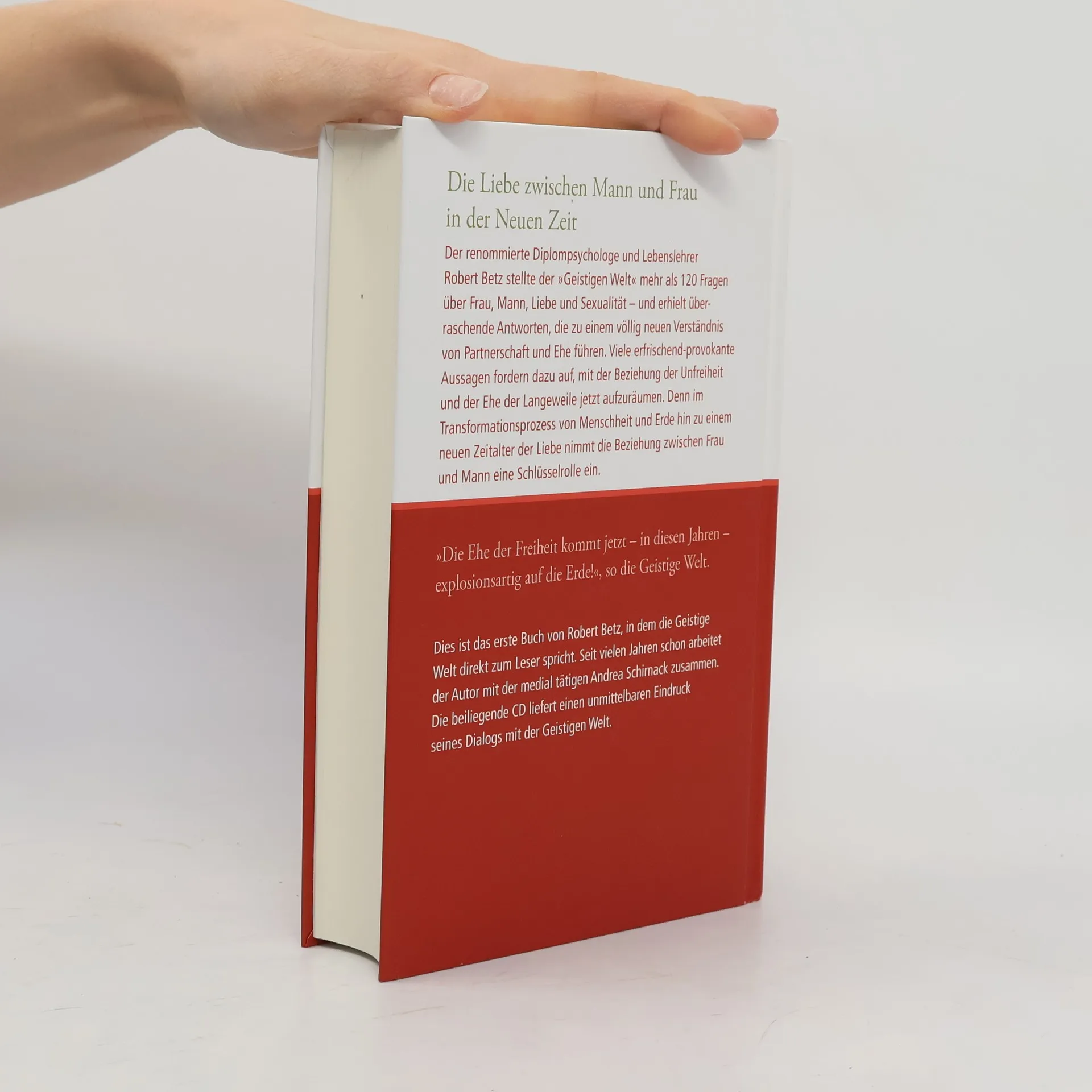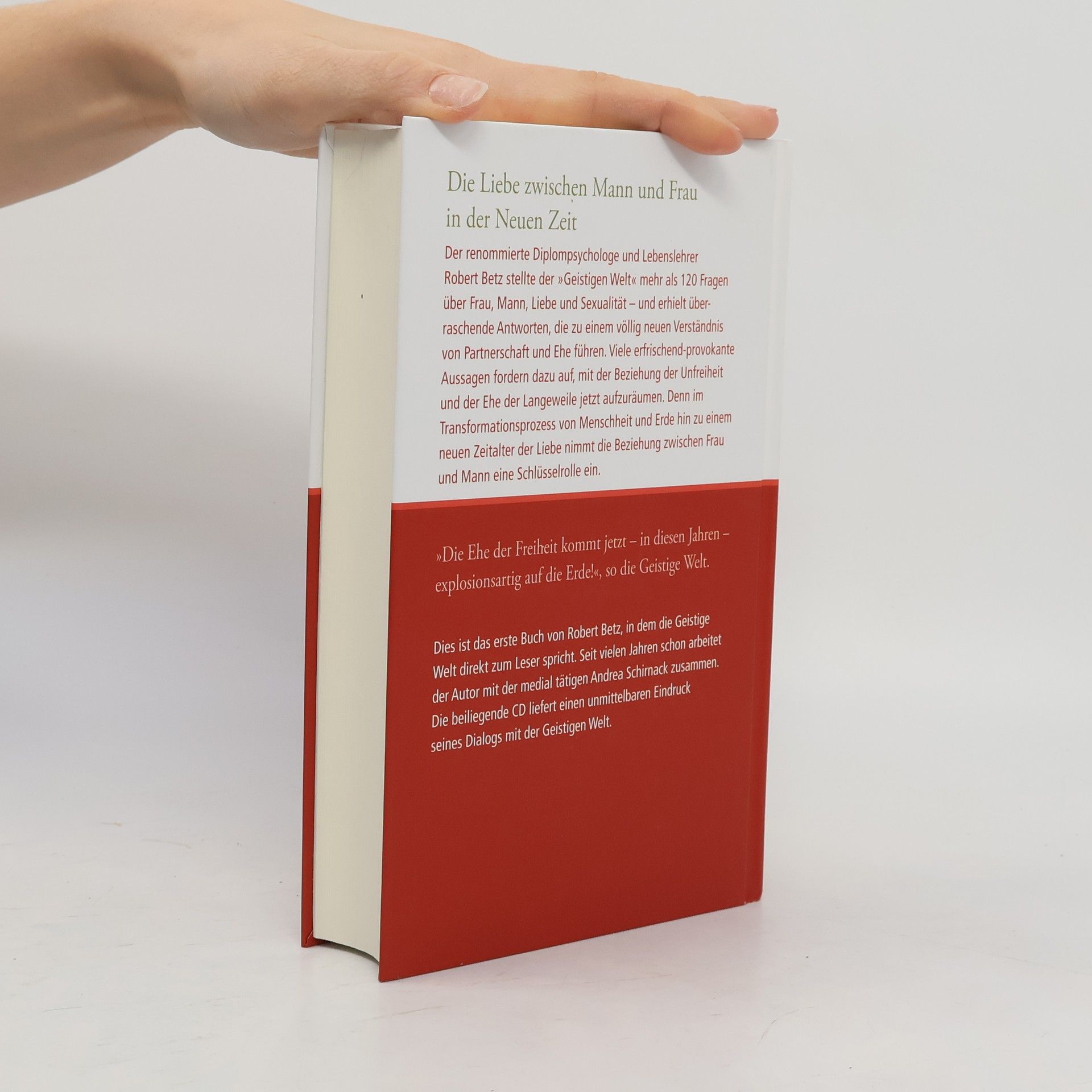 Psychologie trifft SpiritualitätEin überraschendes Konzept mit faszinierendem Ergebnis: Ein renommierter Diplom-Psychologe befragt die Geistige Welt über die ideale Partnerschaft – und erhält Antworten von höchstem lebenspraktischem Wert. Zwölf Jahre lang arbeitete Robert Betz mit Andrea Schirnack, die von der Geistigen Welt als "Instrument" erwählt wurde. Die Botschaften, die Robert Betz durch sie empfing, bieten Antworten, Rat und Hilfestellungen zu den zentralen Punkten, die über unser Liebesglück entscheiden:• Wozu eigentlich gibt es Mann und Frau auf der Erde?• Was bedeutet es, ein »richtiger Mann« bzw. eine »richtige Frau« zu sein?• Was macht das Zusammenleben zwischen ihnen oft so schwer?• Was sind die wahren Ursachen typischer Frauen- und Männerkrankheiten?• Ist die Ehe als Institution überholt?• Die Partnerschaft von morgen: Vision und MöglichkeitEin wahrhaft außergewöhnliches Werk, das sich nicht nur an den Verstand der Leserinnen und Leser richtet, sondern vor allem ihr Herz berührt und ein inneres Verstehen ermöglicht.Buch plus CD mit 60-minütiger Durchgabe, die einen unvergesslichen Live-Eindruck vom Kontakt mit der Geistigen Welt vermittelt.