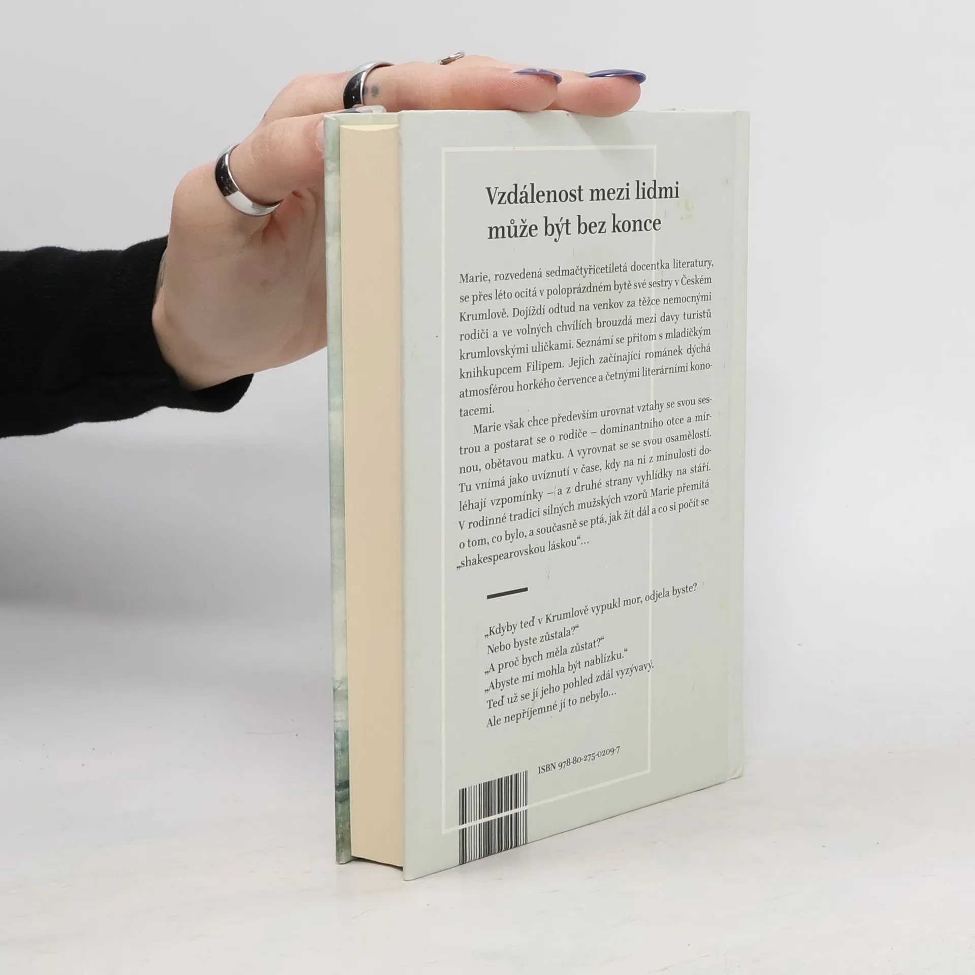 Marie, rozvedená sedmačtyřicetiletá docentka literatury, se přes léto ocitá v poloprázdném bytě své sestry v Českém Krumlově. Dojíždí odtud na venkov za těžce nemocnými rodiči a ve volných chvílích brouzdá mezi davy turistů krumlovskými uličkami. Seznámí se přitom s mladičkým knihkupcem Filipem. Jejich začínající románek dýchá atmosférou horkého července a četnými literárními konotacemi. Marie však chce především urovnat vztahy se svou sestrou a postarat se o rodiče – dominantního otce a mírnou, obětavou matku. A vyrovnat se se svou osamělostí. Tu vnímá jako uvíznutí v čase, kdy na ni z minulosti doléhají vzpomínky – a z druhé strany vyhlídky na stáří. V rodinné tradici silných mužských vzorů Marie přemítá o tom, co bylo, a současně se ptá, jak žít dál a co si počít se „shakespearovskou láskou“…