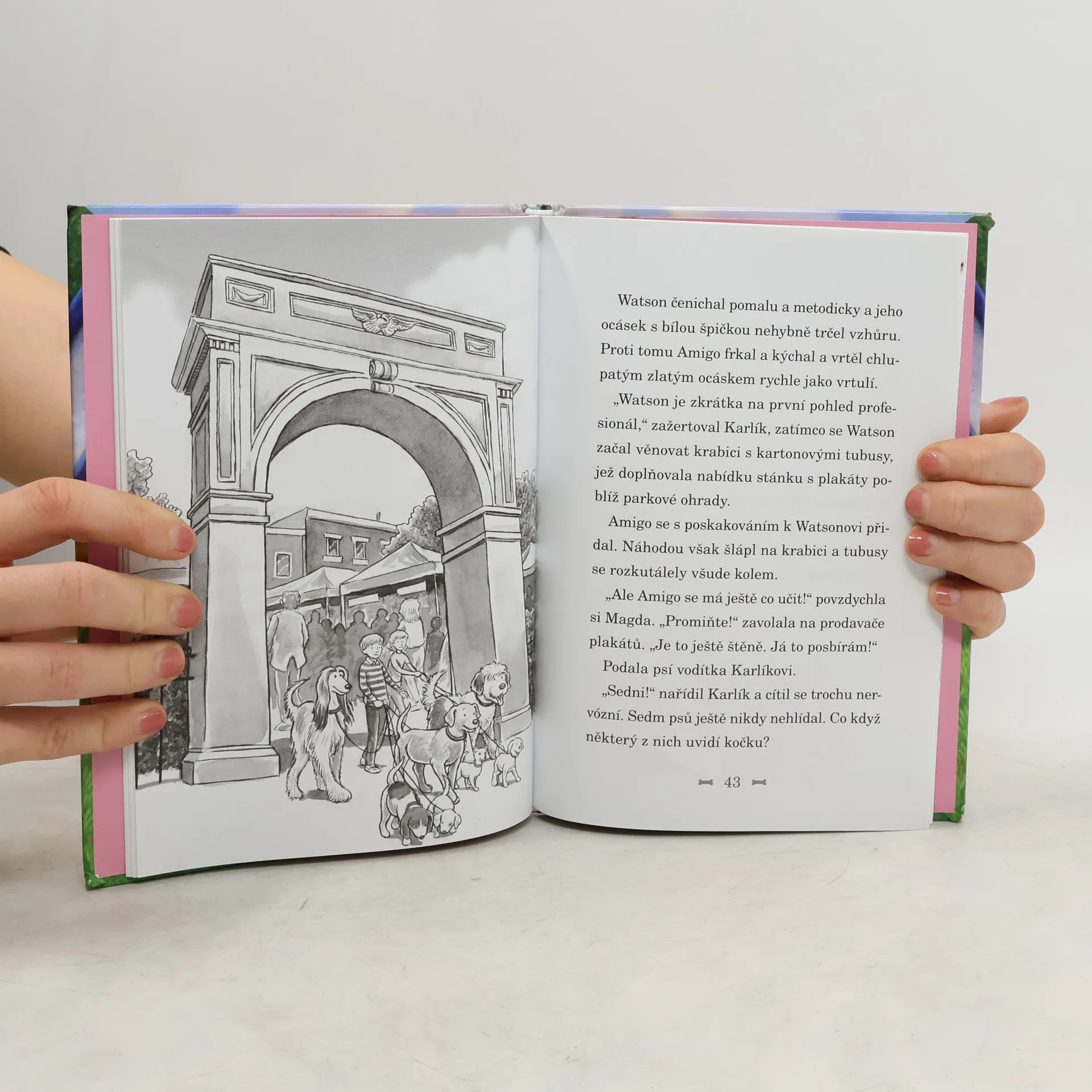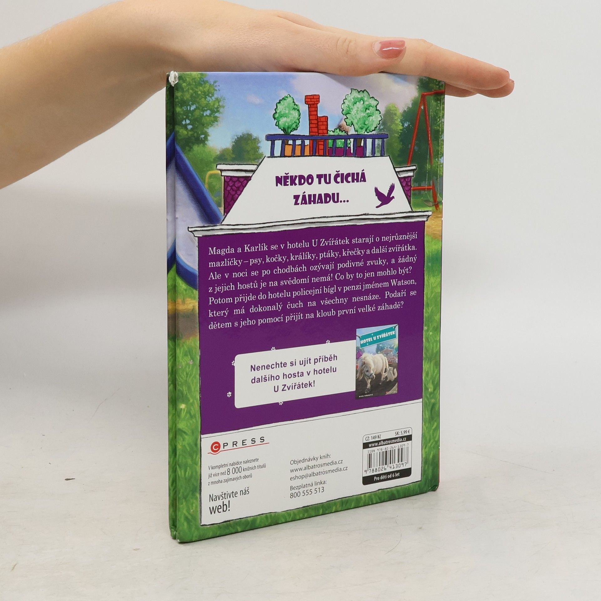 Někdo tu čichá záhadu… Magda a Karlík se v hotelu U Zvířátek starají o nejrůznější mazlíčky – psy, kočky, králíky, ptáky, křečky a další zvířátka. Ale v noci se po chodbách ozývají podivné zvuky, a žádný z jejich hostů je na svědomí nemá! Co by to jen mohlo být? Potom přijde do hotelu policejní bígl v penzi jménem Watson, který má dokonalý čuch na všechny nesnáze. Podaří se dětem s jeho pomocí přijít na kloub první velké záhadě?