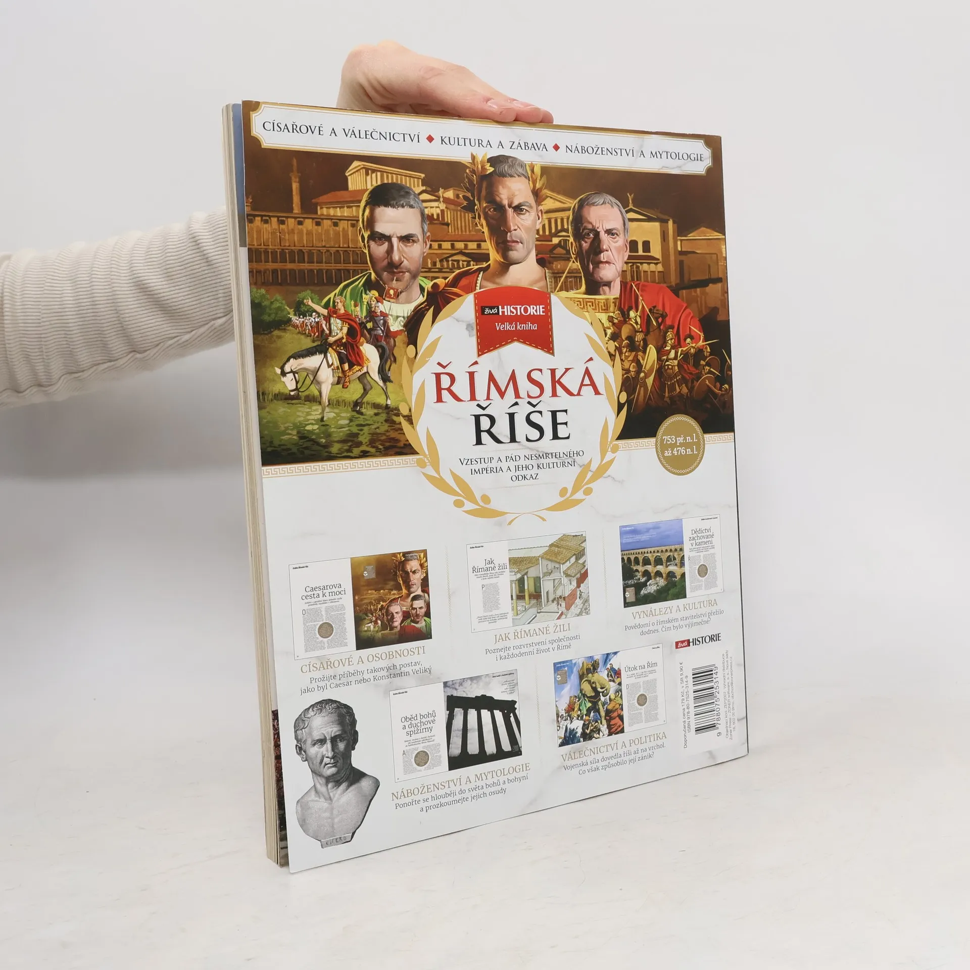 Velký římský historik a senátor Publius Cornelius Tacitus jednou prohlásil: „Velké říše se neudržují zbabělostí.“ Toto tvrzení římská říše zcela naplňuje. Tvrdě a účinně ovládala svá území a střežila své hranice a do dějin se zapsala jako jedna z nejslavnějších a nejznámějších říší všech dob. V době svého největšího rozsahu měla 50–60 milionů obyvatel, což je tradiční odhad, ale podle posledních výzkumů v ní mohlo žít 70–100 milionů lidí. Říši, která byla nejprve království, poté republikou a nakonec dosáhla vrcholu v císařství, můžeme zkoumat díky velkému úsilí jejích obyvatel zaznament své životní příběhy i válečné úspěchy. Počátek moderní civilizace je třeba hledat právě ve starém Římě a jeho bohaté kultuře, romantické mytologii a spletitém politickém systému, které dodnes vzbuzují zájem i inspiraci. Poznejte příběh vzestupu a pádu této pyšné říše, které se podařilo obstát ve zkoušce času a zrodit legendární civilizaci. Hlavní témata: Legenda jménem Řím Zrození senátu Dědictví zachované v kameni Dynastie římských císařů Mytické dívky a ženy