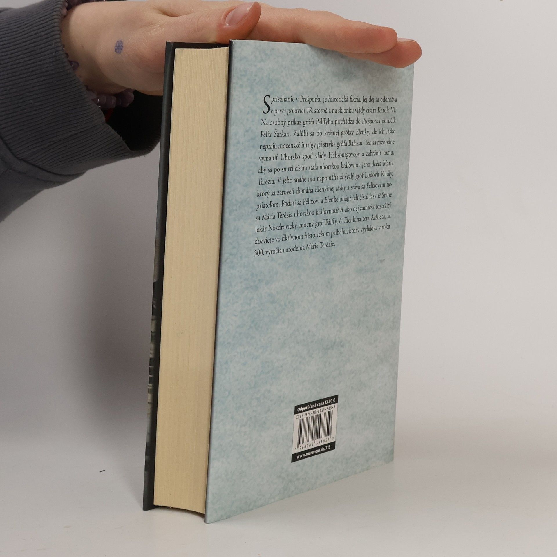 Sprisahanie v Prešporku je historická fikcia. Jej dej sa odohráva v prvej polovici 18. storočia na sklonku vlády cisára Karola VI. Na osobný príkaz grófa Pálffyho prichádza do Prešporka poručík Félix Šarkan. Zaľúbi sa do krásnej grófky Elenky, ale ich láske neprajú mocenské intrigy jej strýka grófa Balassu. Ten sa rozhodne vymaniť Uhorsko spod vlády Habsburgovcov a zabrániť tomu, aby sa po smrti cisára stala uhorskou kráľovnou jeho dcéra Mária Terézia. V jeho snahe mu napomáha zhýralý gróf Ľudovít Király, ktorý sa zároveň domáha Elenkinej lásky a stáva sa Félixovým nepriateľom. Podarí sa Félixovi a Elenke uhájiť ich čistú lásku? Stane sa Mária Terézia uhorskou kráľovnou? A ako dej zamieša roztržitý lekár Nozdrovický, mocný gróf Pálffy, či Elenkina teta Alžbeta, sa dozviete vo fiktívnom historickom príbehu, ktorý vychádza v roku 300. výročia narodenia Márie Terézie.