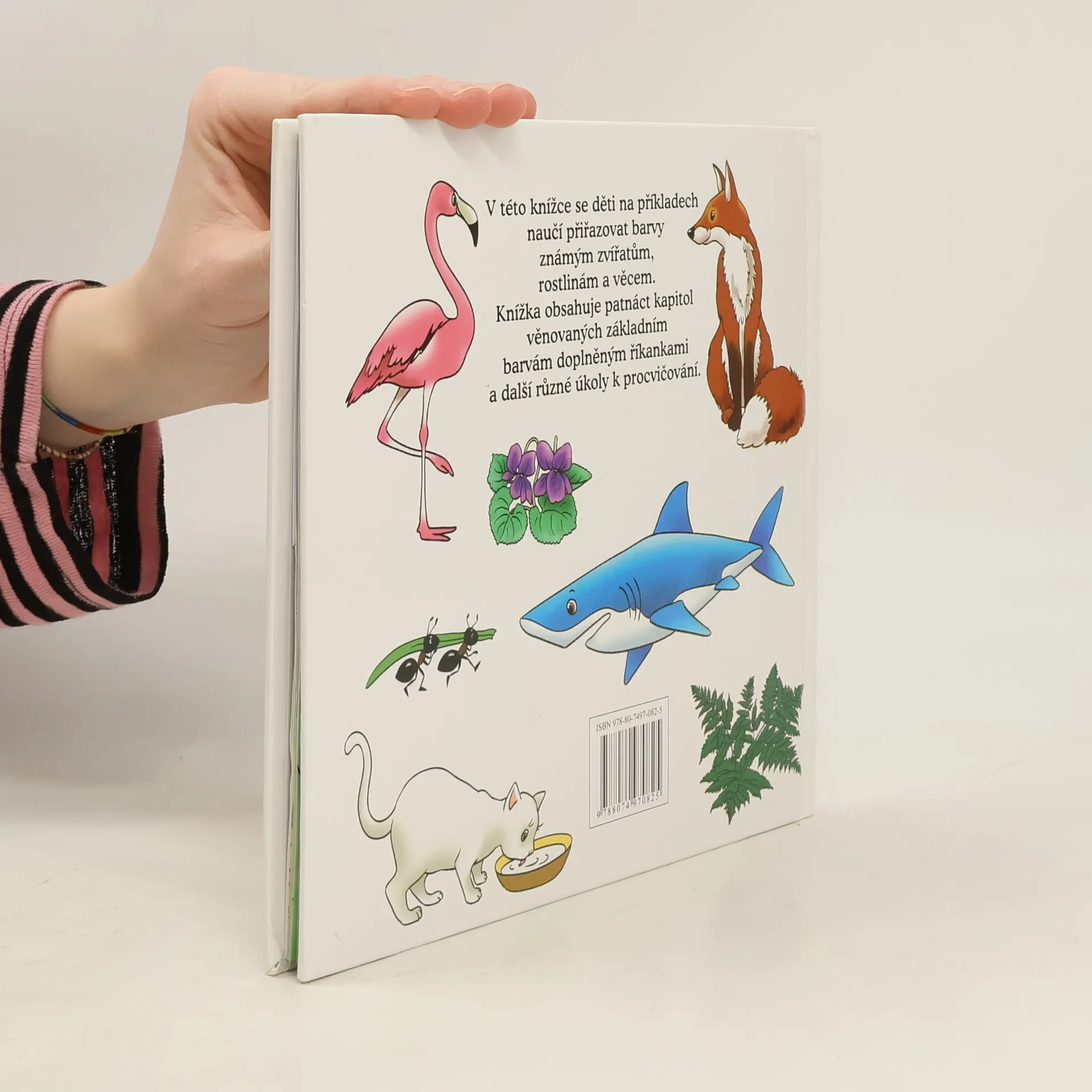 V této knížce se děti na příkladech naučí přiřazovat barvy známým zvířatům, rostlinám a věcem. Knížka obsahuje patnáct kapitol věnovaných základním barvám doplněným říkankami a další různé úkoly k procvičování.